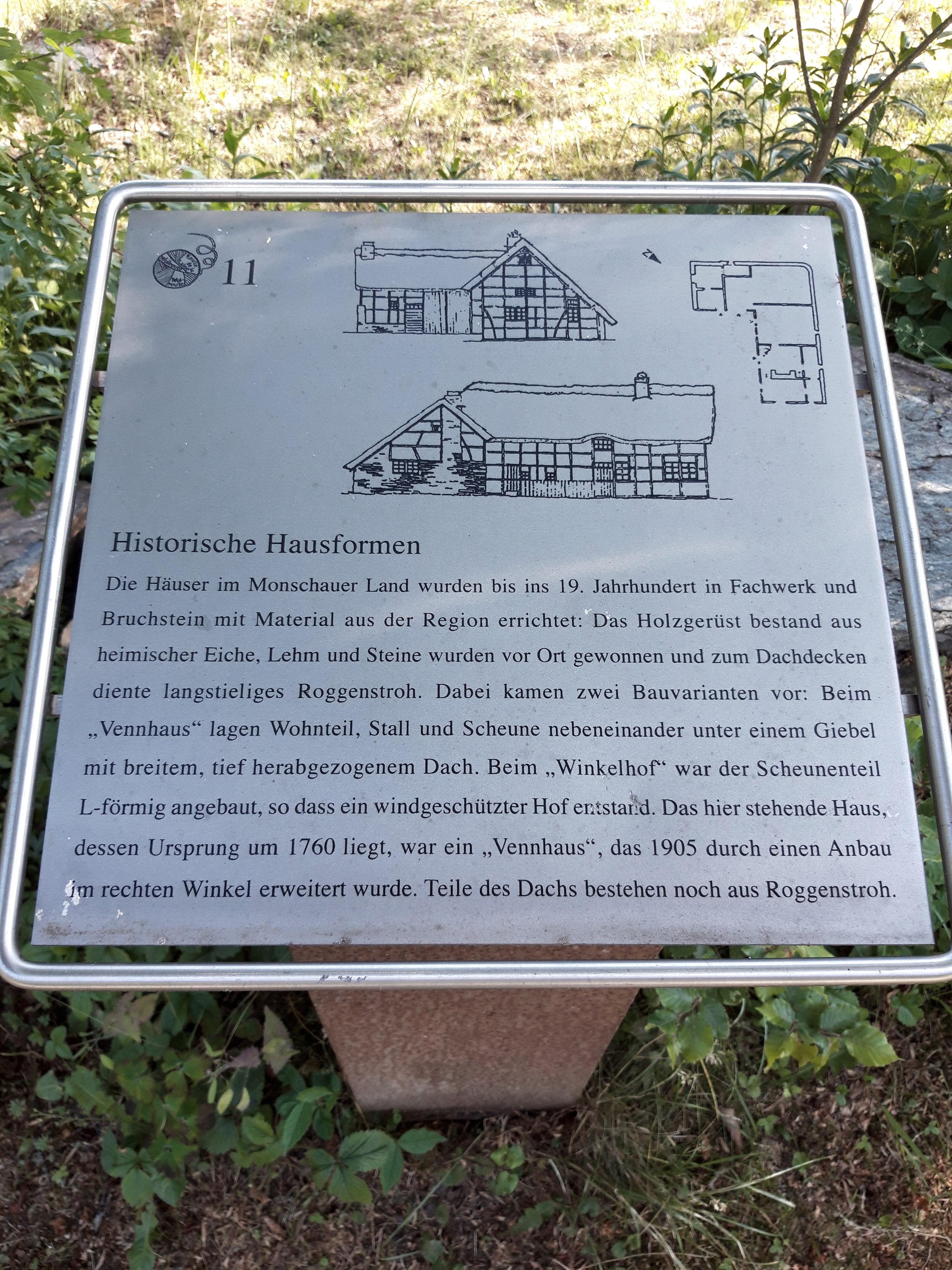 Je weiter wir uns dem Ortsrand nähern, entdecken wir, dass die Hecken entlang der Wiesen und Weiden ganz anders aussehen. Eine weitere Infotafel informiert uns über die Besonderheiten dieser Landschaftshecken. Die beste Aussicht auf diese Kulturlandschaft bietet der „Eifel-Blick“ am südlichen Ortsrand.