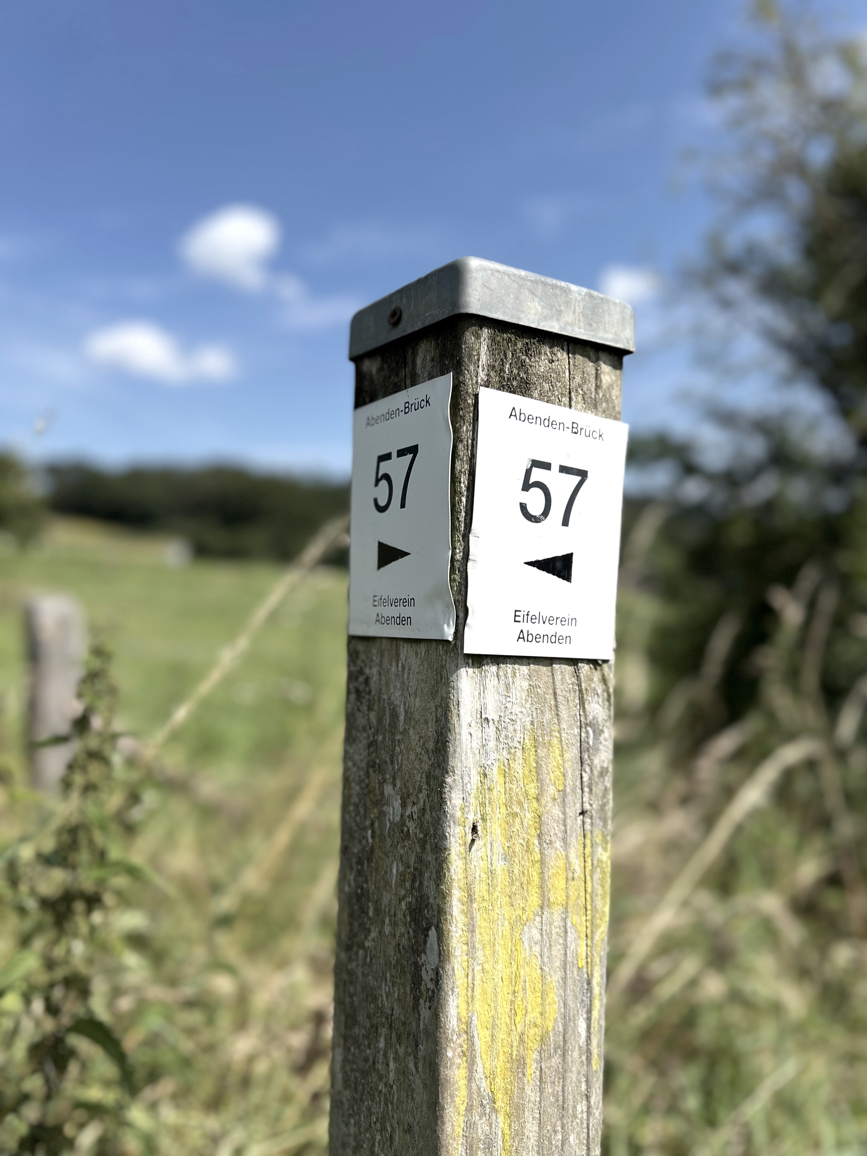 Start der Wanderung ist entweder in Abenden oder in Nideggen-Brück. Wir starten in diesem Falle von Nideggen-Brück. Wir wandern über die Rurbrücke und dann gleich rechts dem Wanderweg Nr. 57 folgend nach Abenden. Der Weg führt an der Rur entlang mit Blick auf die Buntsandsteinfelsen. In Abenden (halbe Wegstrecke) ist eine Pause zu empfehlen. Eine kleine Runde durch das kleine Eifeldorf lohnt sich. Dann geht es wieder über die Rur und auf der anderen Rurseite, weiterhin dem Wanderweg Nr. 57 folgend, zurück nach Brück.