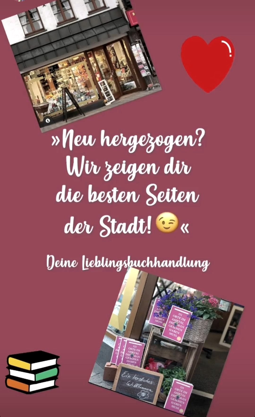 Wir lieben den Austausch und den persönlichen Kontakt zu unseren Kunden und sind gleichzeitig sozialer Treffpunkt,Informationsschalter und Ratgeber ;)Neben Büchern gibt es bei uns auch Zeitungen,Karten,Bürobedarf,Tonies,Kalender, Schulbedarf und mehr...