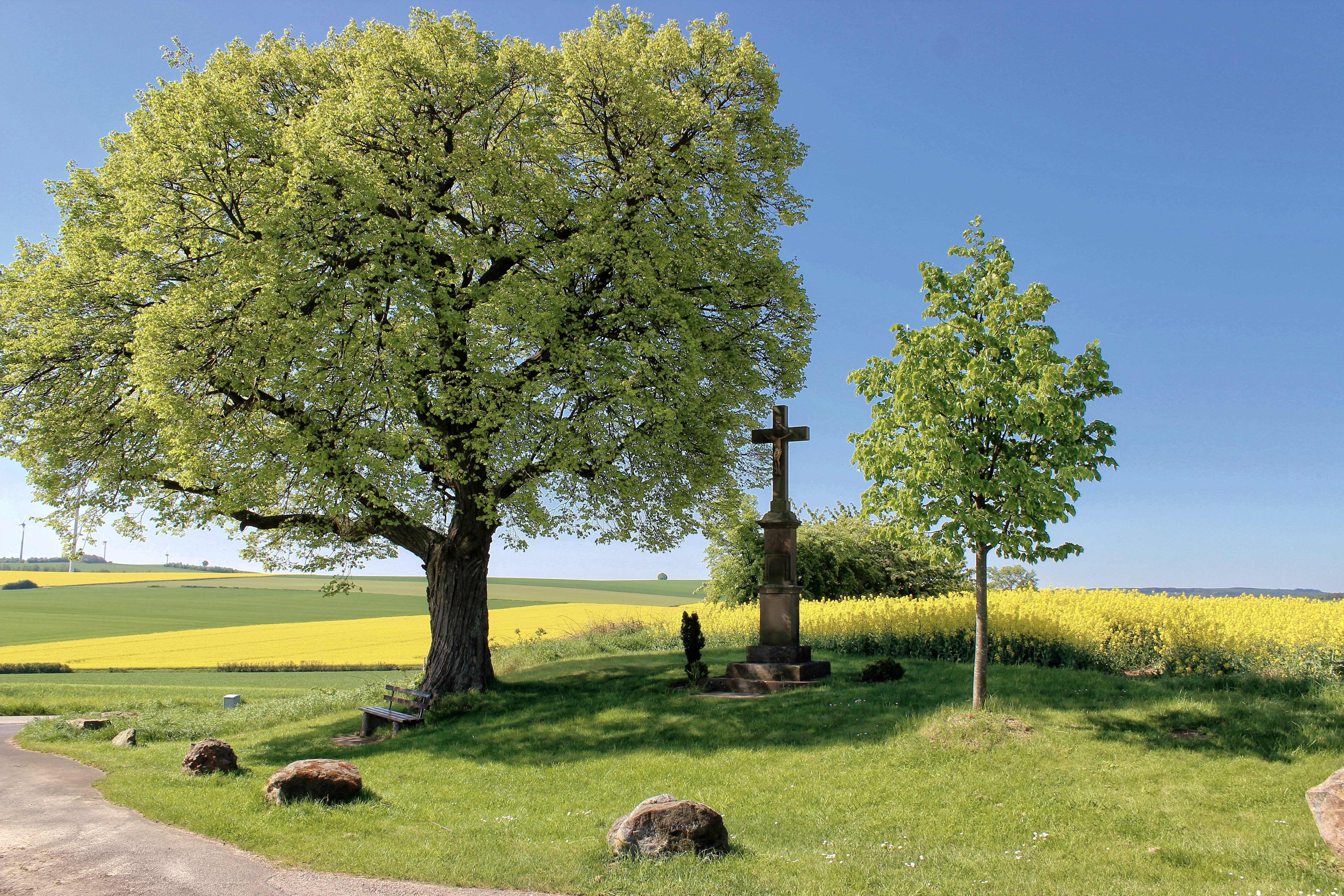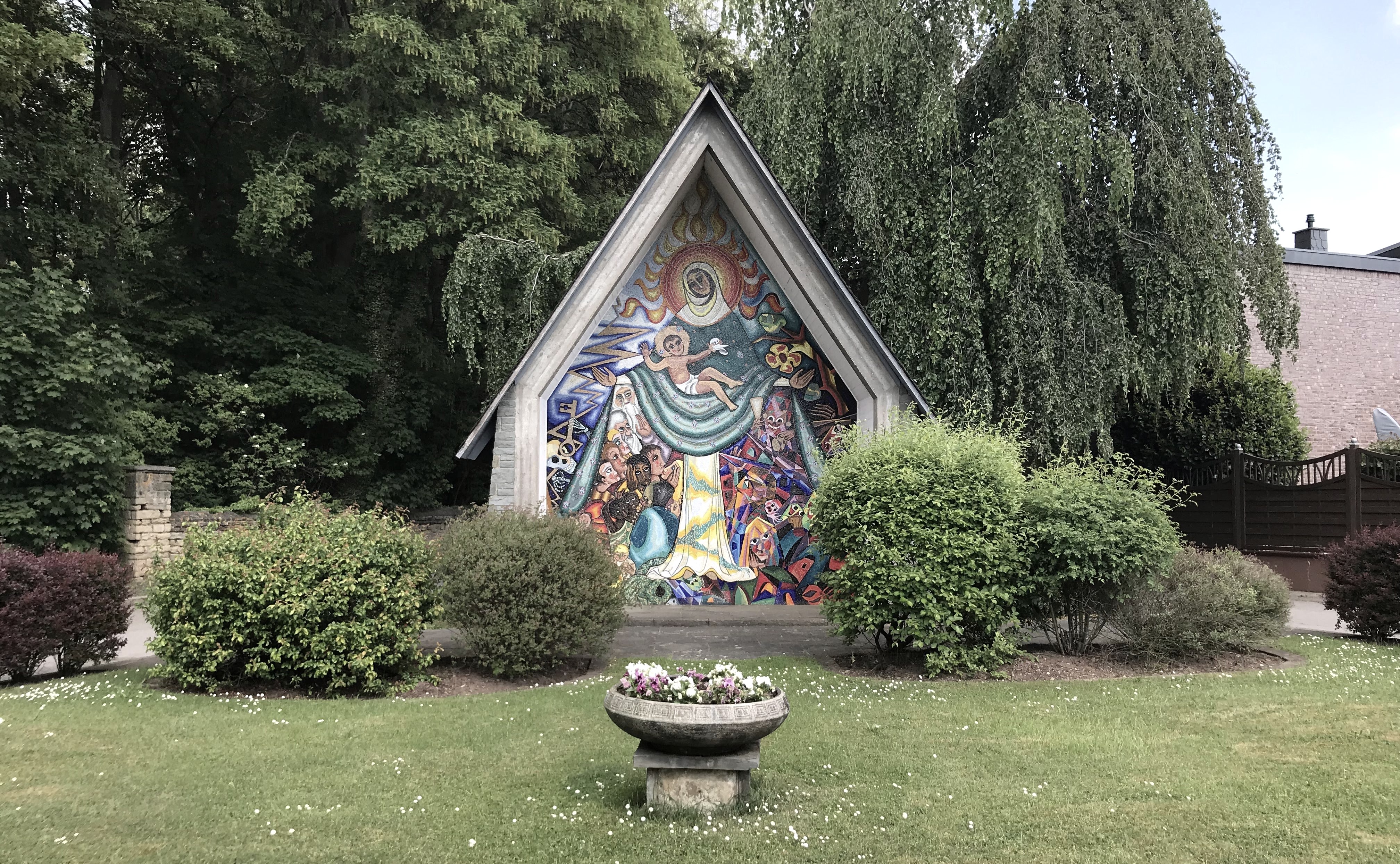 Der Vlattener Rundgang nimmt die „gute Stube“ des Ortes - die Jugendhalle - zum Ausgangspunkt. Gebaut wurde sie während des Ersten Weltkriegs, im Zweiten diente sie als Lazarett. Ihr großer Saal ist bis heute gefragter Treffpunkt im dörflichen Leben. Weiter führt Sie der Spaziergang zum südwestlichen Ortsrand, genauer in die Mühlengasse. Die pittoreske Straße erhielt ihren Namen von einer Wassermühle, die bis ins 19. Jhd. hier verortet war. Die Mühle zerkleinerte die in zwei nahegelegenen Bergwerken gewonnenen Kupfererze. Aus der Senke des Vlattener Baches steigt der Weg nun auf die Höhe des Lützenbergs. Dreimal täglich klingen die Glockenschläge der St. Michael Kapelle hinunter in den Ort. In der 1912 gebauten Kapelle finden sich sehenswerte Fensterbilder und spätmittelalterliche Malereien. Einen neuzeitlichen Kontrast dazu bildet die nächste Station: das knallbunte Mosaik der Schutzmantelmadonna. Das Marienbildnis wurde 1970 von Margarita Rieth aus 15 Zentnern Steinchen angefertigt. Ein paar Schritte weiter residiert fast ein wenig verwunschen die Burg Vlatten. Der markante, historisierende Burgturm aus dem 19. Jhd. ist nur eine der vielen baulichen Veränderungen und Ergänzungen, die die einstige Wasserburg seit dem 14. Jhd. erfahren hat. Ebenfalls am Vlattener Bach liegt die Basilika St. Dionysius. Mit ihrem mächtigen Westturm ist sie seit vielen Jahrhunderten das Wahrzeichen des Ortes. Die letzte Station lenkt Ihre Aufmerksamkeit auf die für das Rheinland so typischen Wegekreuze. Mit ein wenig Zeit können Sie noch zehn weitere in der Vlattener Gemarkung entdecken.