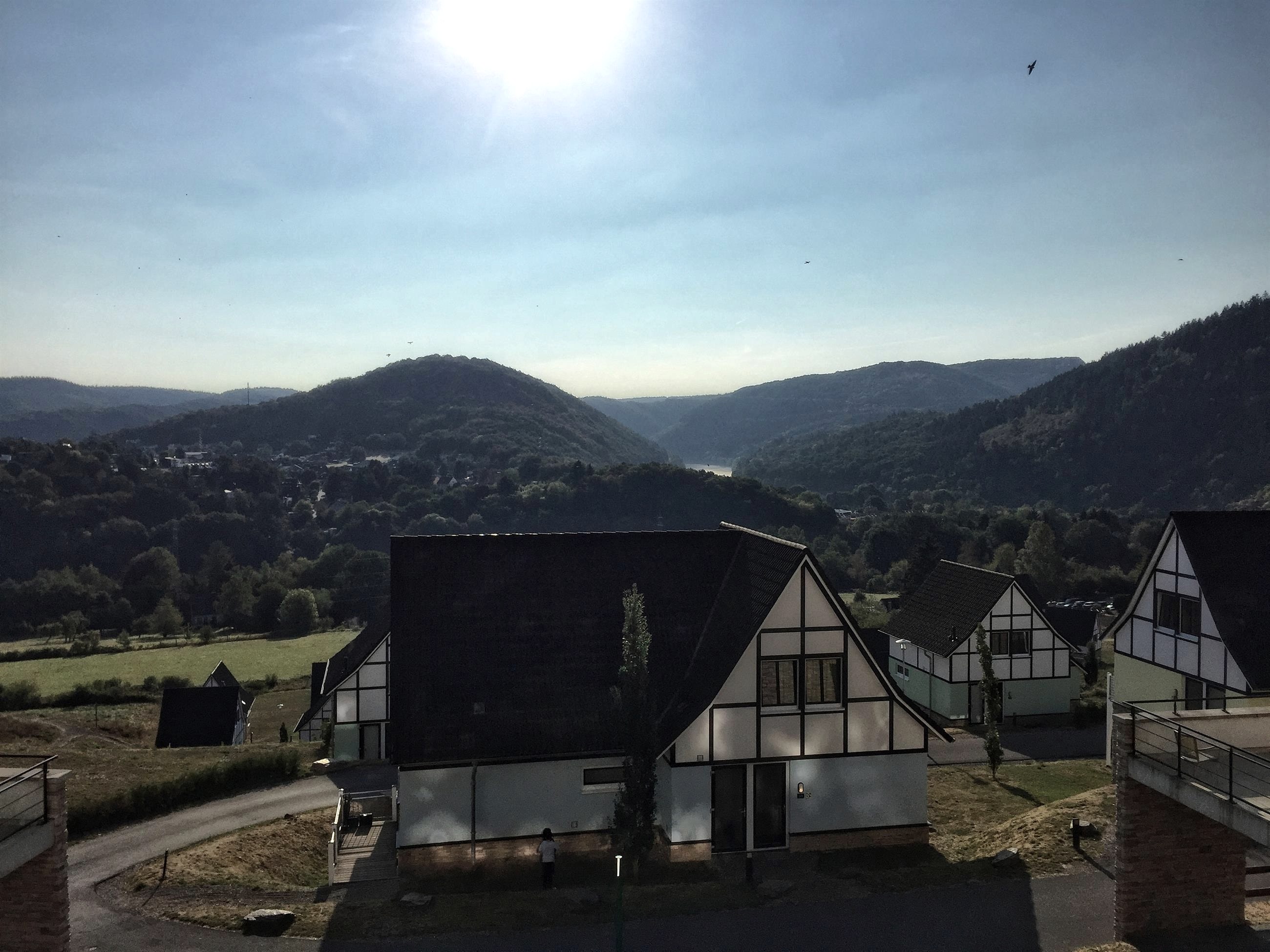 Dieser Eifel-Blick befindet sich auf der Promenade des seit 2014 eröffneten Landal Resort "Eifeler Tor". Er bietet einen wundervollen Blick auf das Rurtal sowie über Heimbach-Hasenfeld.