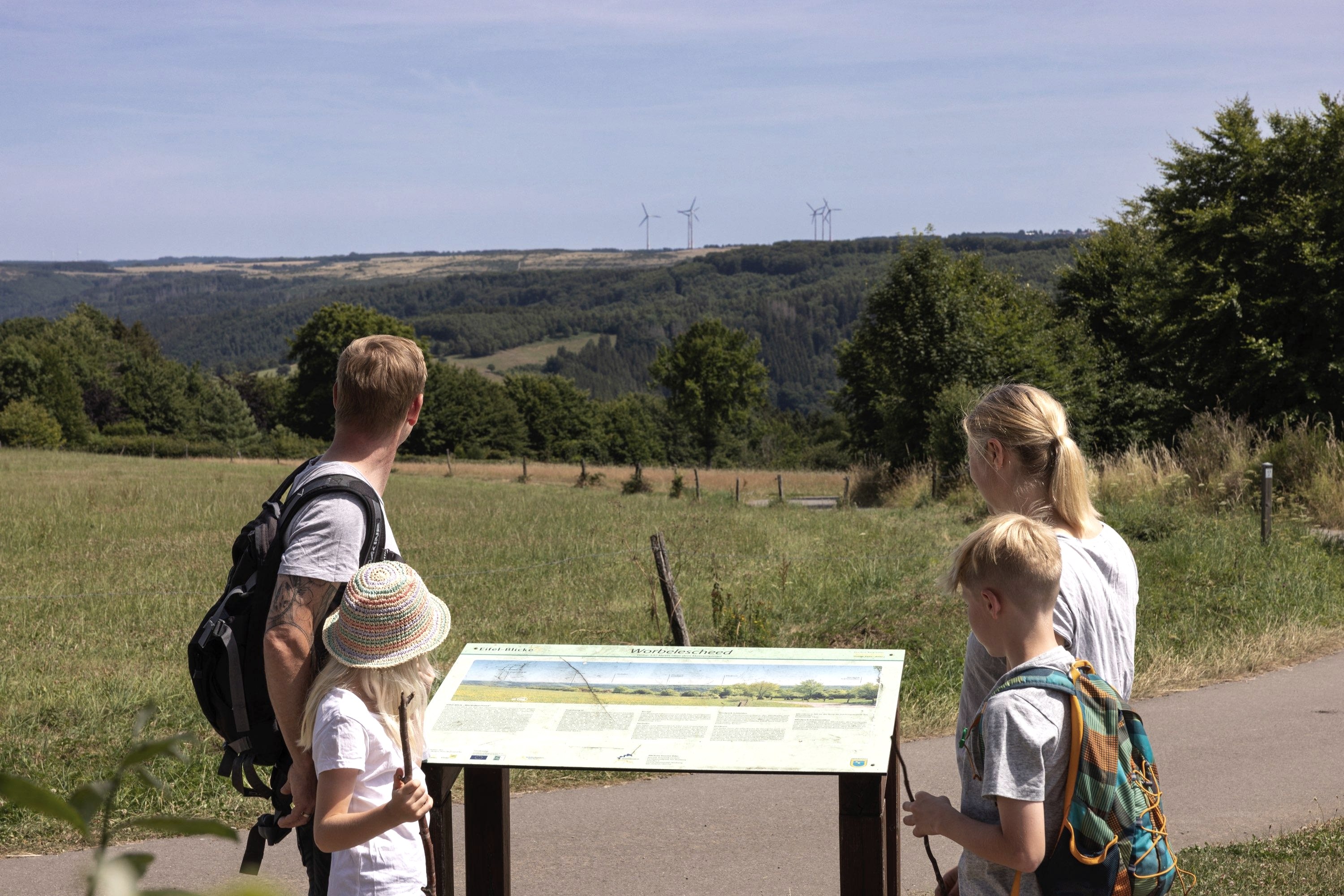 Auf einer Höhe von 530m liegt der Eifel-Blick „Worbelescheed“, der eine fantastische Weitsicht über den weitläufigen Höhenzug und den Nationalpark Eifel mit Kermeter und Dreiborner Hochfläche bietet. Die vielen Windräder in der Ferne gehören zu den Windparks in Dreiborn und Schöneseiffen.