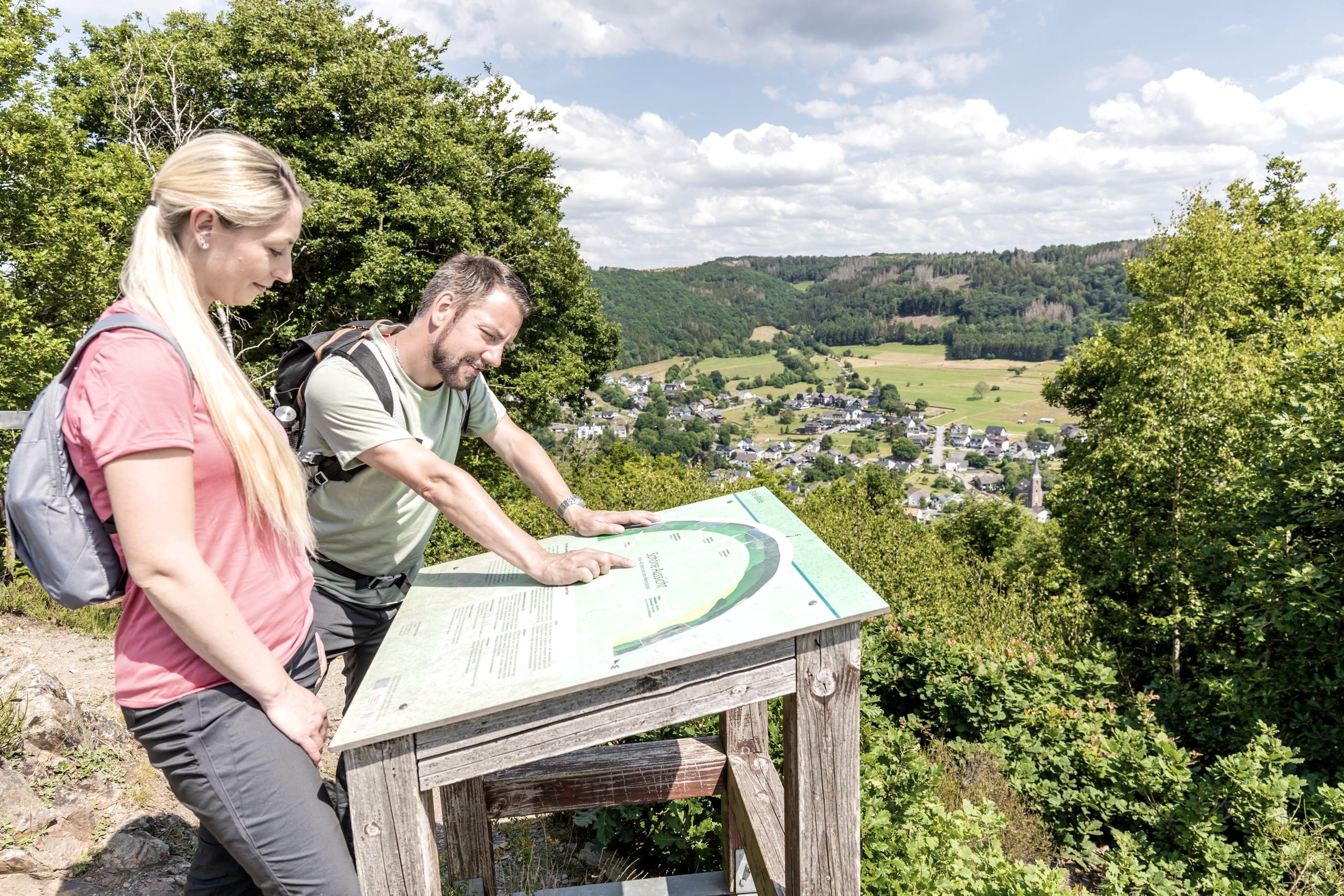 Ein Besuch lässt sich prima mit einer Wanderung verbinden. Der örtliche Rundwanderweg Seifenauel-Runde (Nr. 46) führt direkt am Eifel-Blick vorbei.