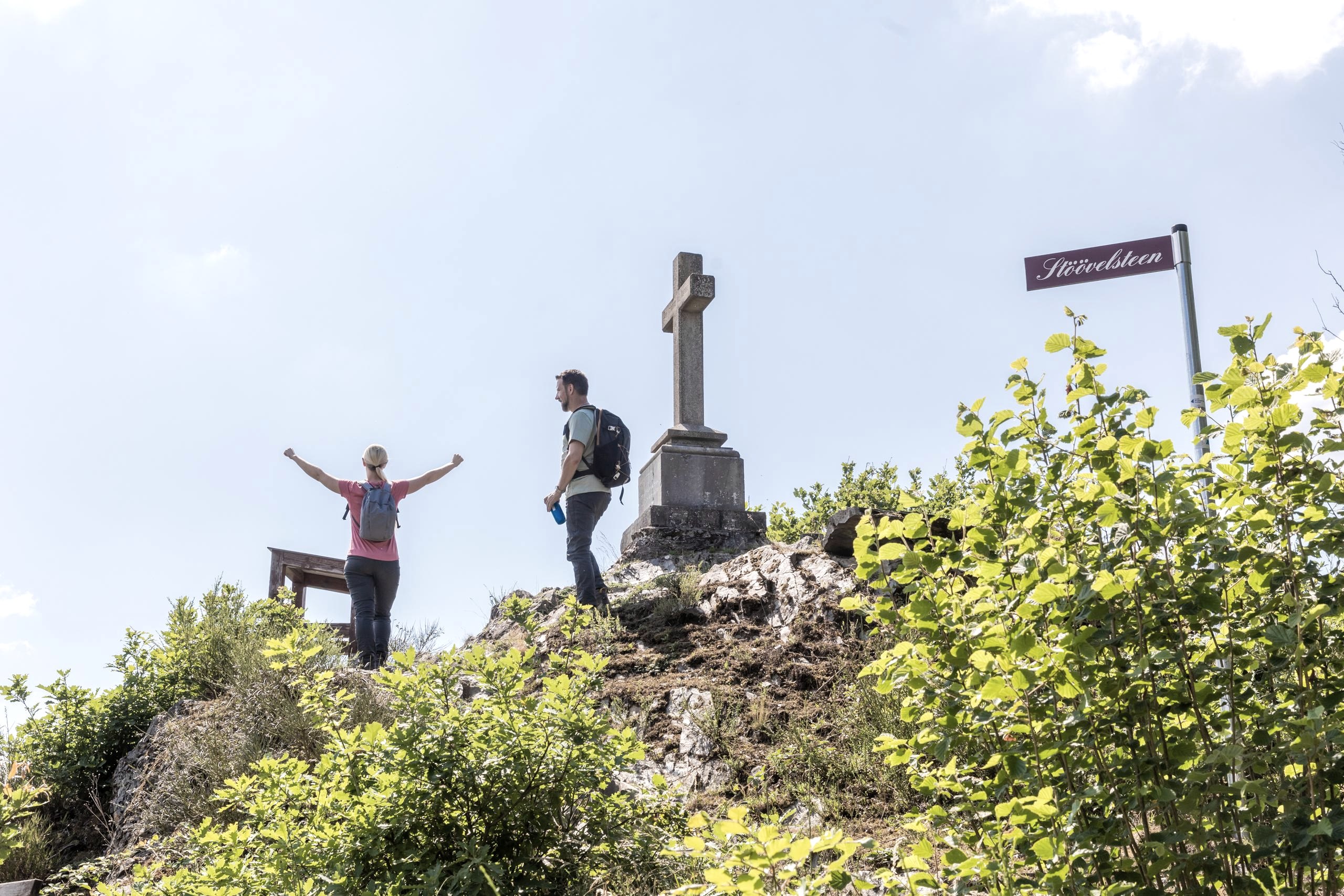 Seinen Namen erhielt der Aussichtspunkt "Schöne Aussicht" vom preußischen König Friedrich Wilhelm IV, der bei einem Besuch sehr beeindruckt vom Ausblick war. Der damalige Landrat Bernhard Freiherr von Scheibler, der den König auf diesem Ausflug begleitete, ließ daraufhin zur Erinnerung ein Steinkreuz aufstellen. Im Krieg wurde das Kreuz zerstört, jedoch danach wiederaufgebaut. Der Sockel stammt vom Original aus dem Jahr 1887.