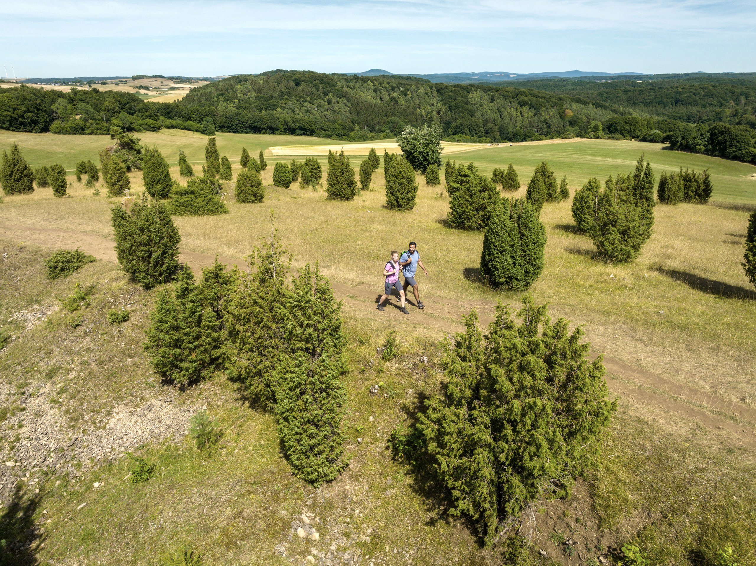 Der Wacholder, die Zypresse des Nordens, ist der Star auf dieser 16 Kilometer langen Wandertour Eifelspur "Toskana der Eifel", die in Blankenheim-Ripsdorf startet. Südlich der Gemeinde Blankenheim liegt das größte zusammenhängende Wacholder-Schutzgebiet in Nordrhein-Westfalen.