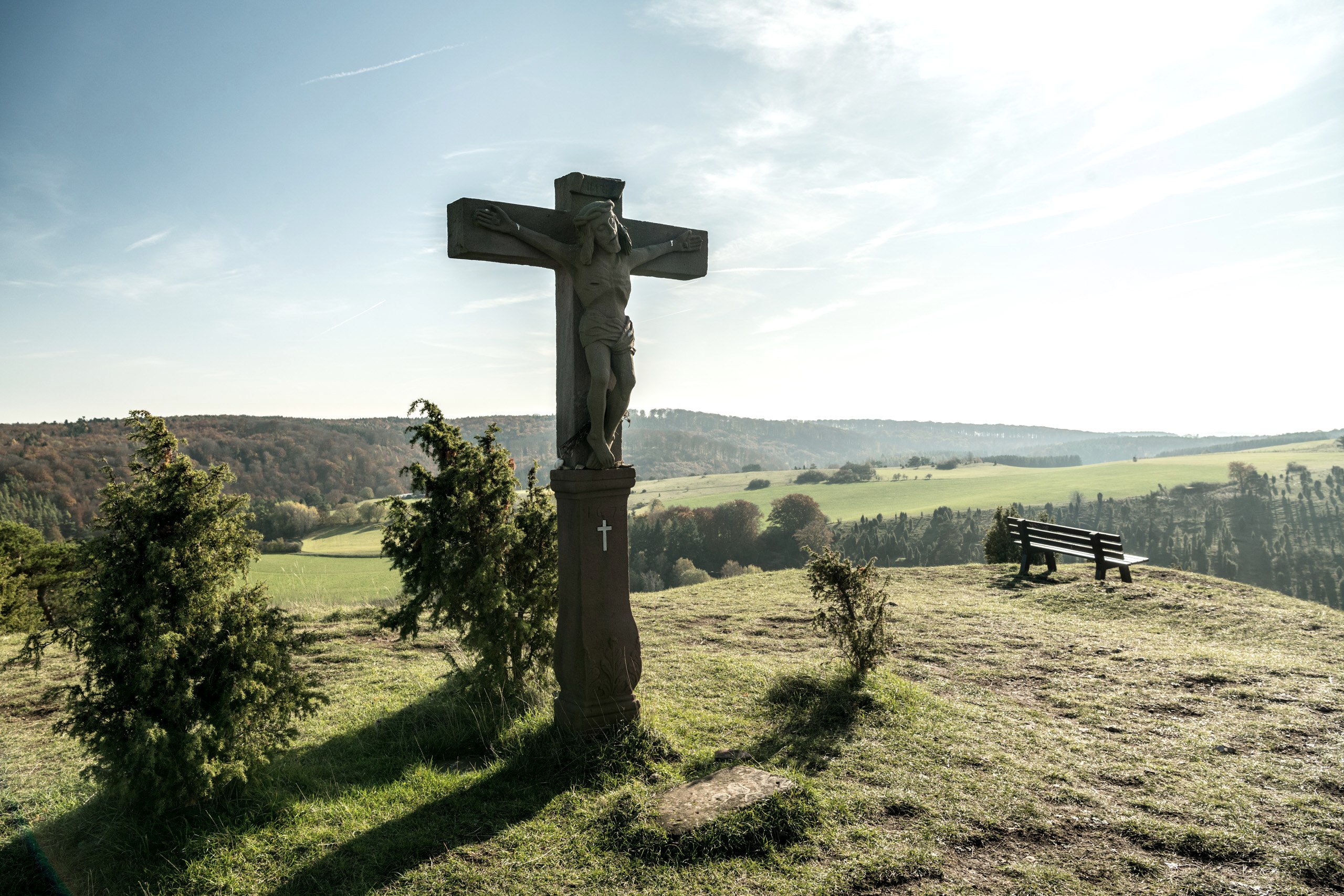 Es blühen im Frühsommer die Orchideen, im Spätsommer die Enziane. Zahlreiche Insekten bevölkern die blütenreichen Rasen der Kalktriften. Inmitten der Landschaft erhebt sich der Kalvarienberg über die Landschaft. Von dort schweift der Blick weit über die Landschaft. Am Horizont erhebt sich die Hohe Acht, der höchste Berg der Eifel. Hier spürt man den besonderen Zauber des Kalvarienbergs und vergisst zumindest für einen Moment alles um sich herum.