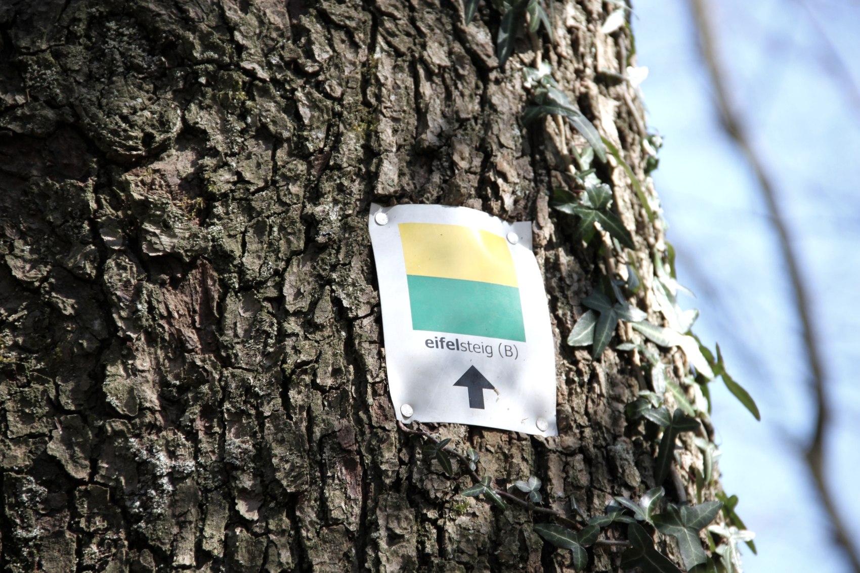Gleich zu Beginn dieser Etappe betrittst Du einen spannenden Grenzbereich: Du startest Deine Wanderung und überquerst in Roetgen die Trasse der alten Vennbahn, die zu Belgien gehört. Dahinter bist Du wieder in Deutschland. Genauer gesagt in einer deutschen Exklave - denn Belgien umgibt diesen Teil von Roetgen komplett. Der Wechsel zwischen Deutschland und Belgien begleitet Dich auf dieser Etappe. Doch die Staatsgrenze ist heute nicht mehr zu spüren - einzig die wechselnde Eifelsteig-Markierung macht sie sichtbar. In Deutschland zeigt Dir das Eifelsteig-Logo den Weg, in Belgien ist es ein gelb-grüner Balken. Für die Menschen hier ist das ständige Hin und Her zwischen den Ländern ganz normal - vielleicht sind sie auch deshalb besonders offen und ausgeglichen.