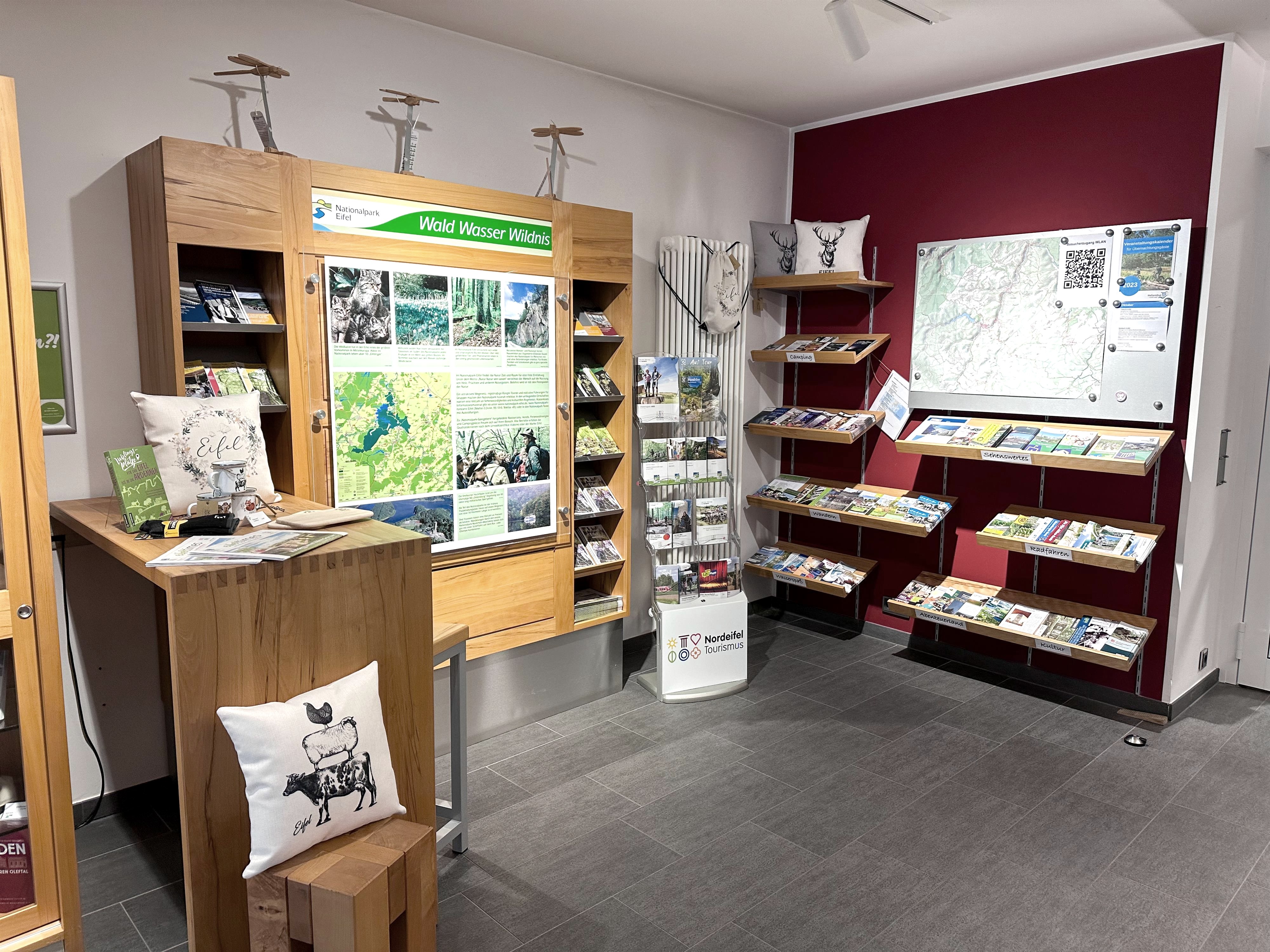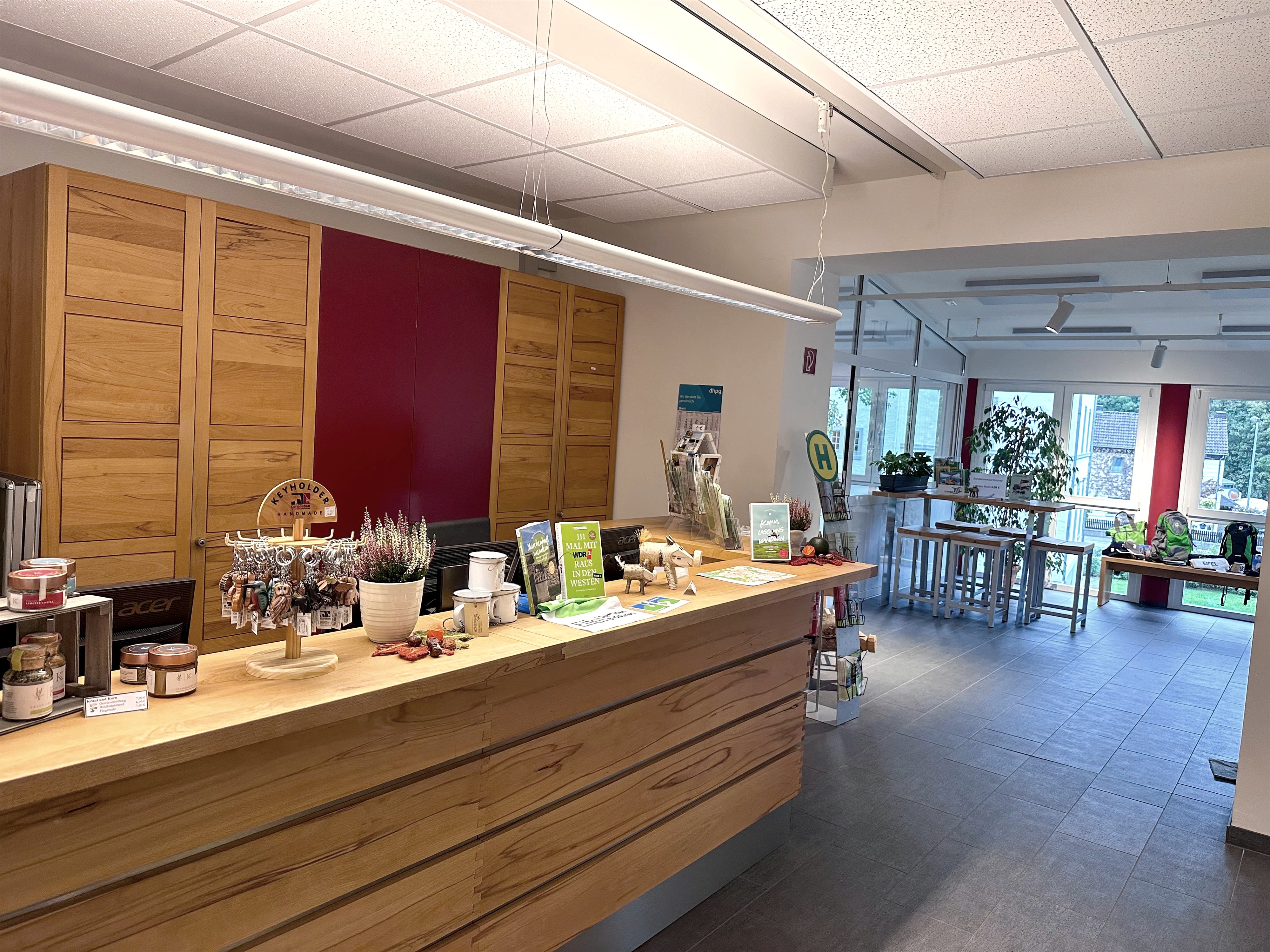 Zudem finden Sie bei uns eine Vielzahl an Souvenirs aus dem Eifelshop, der lokalen Firmen "Kraut und Korn" sowie "Mitgebracht" und Büchern über die Region.