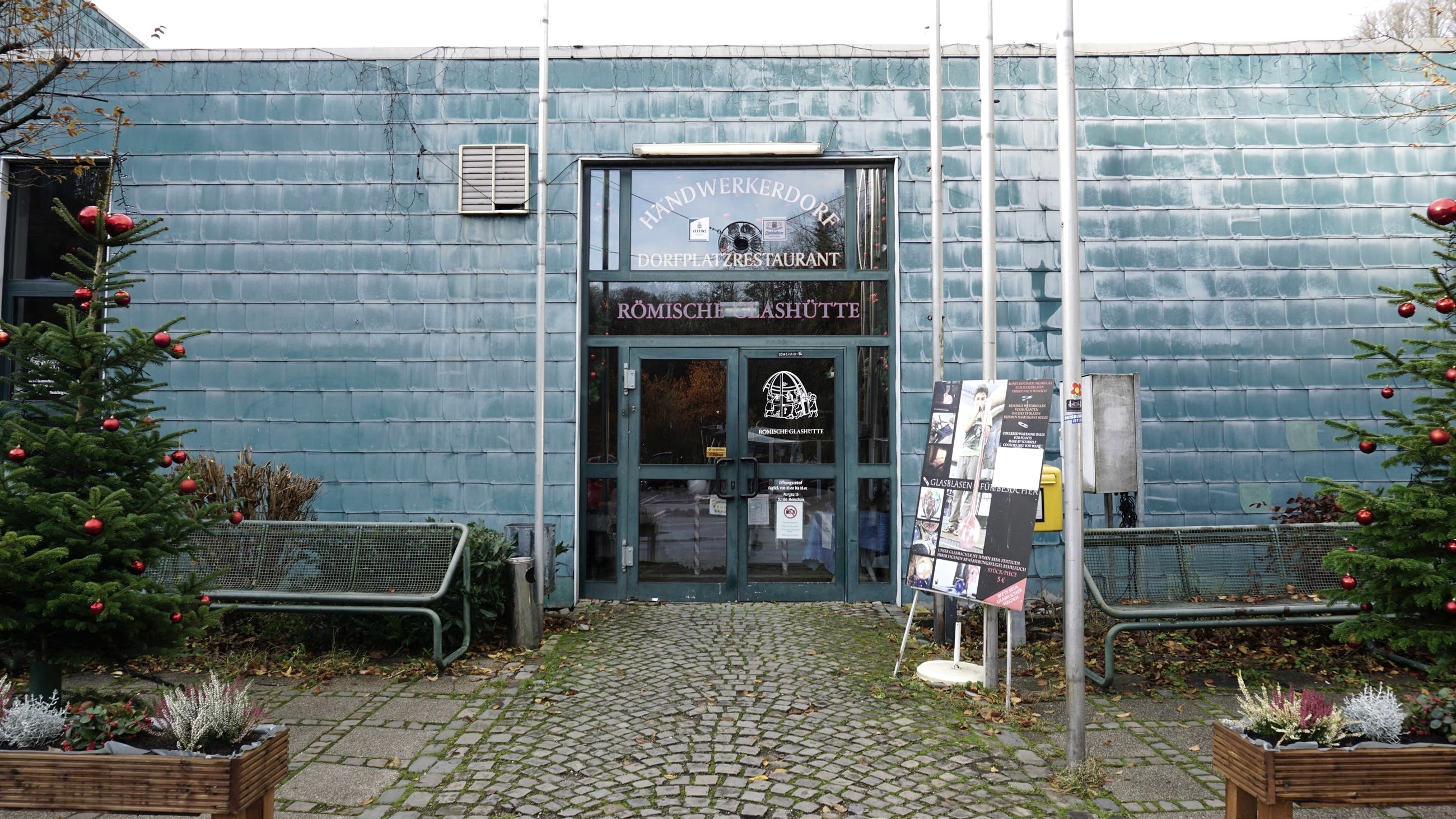 Erleben Sie traditionelles Handwerk in den Hallen des Monschauer Handwerkermarktes und der Glashütte! Die "Monschauer Glashütte" ist eine der beliebtesten Sehenswürdigkeiten in Monschau. In einer Führung erleben Sie, wie vor 2000 Jahren Glaswaren gefertigt wurden: Vom einschmelzen des Sandes, über das Blasen des noch flüssigen Glases bis zur Feinschliff-Verzierung von Vasen, Gläsern, etc. Der "Handwerkermarkt" ist im Stil eines Dorfplatzes angelegt. Rund um einen künstlichen Bachlauf mit Mühlrad befinden sich mehrere Marktstände. Im " Mittelpunkt des Handwerkermarktes", stoßen Sie auf das gemütliche "Dorfplatzrestaurant". Von hier aus haben Sie Blick auf das Geschehen des Marktes, seine Angebote und seine Besucher. Kurzum, ein Platz, einer angenehmen Verweilpause bei einem schönen Essen und leckeren Süßigkeiten