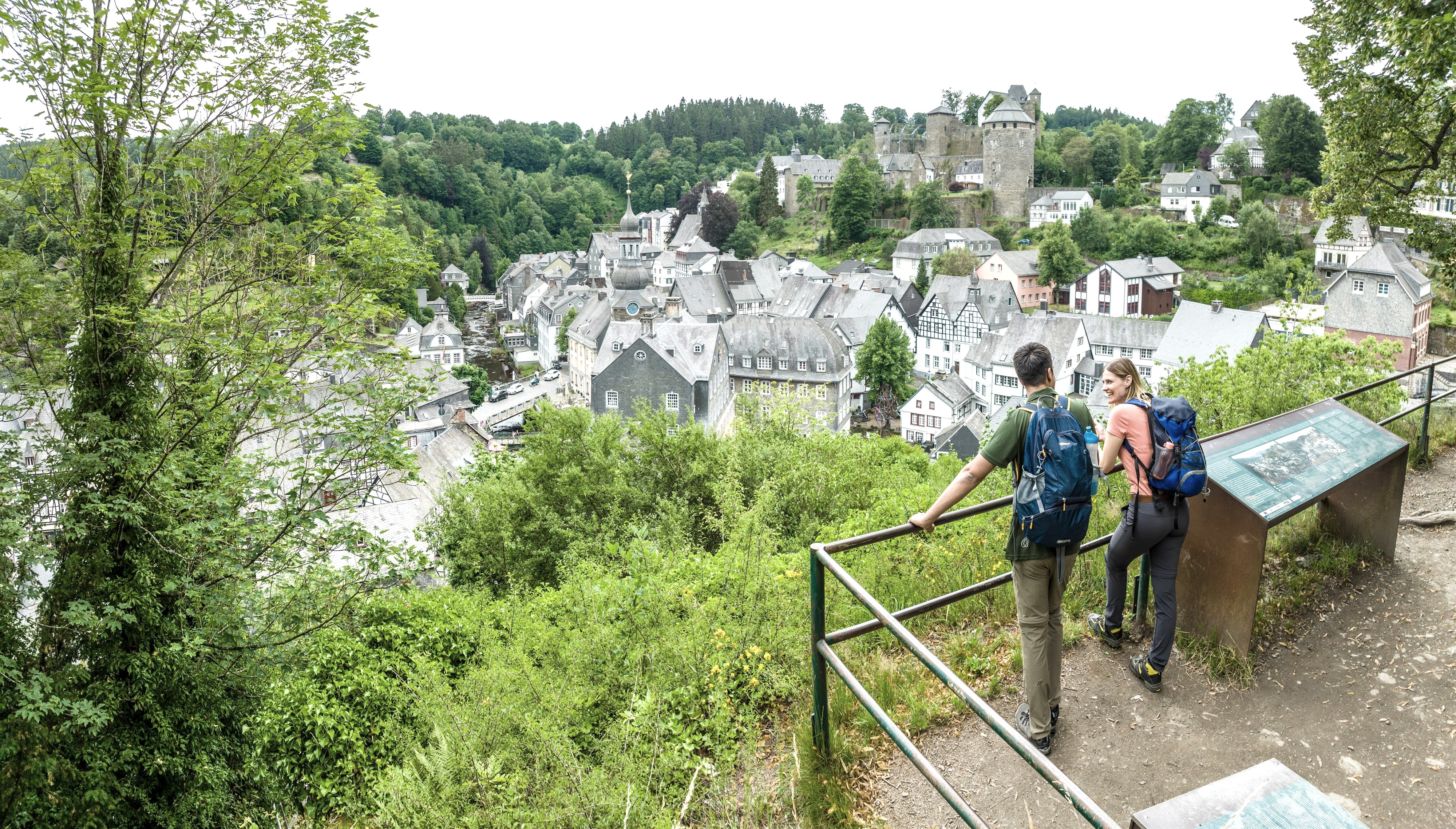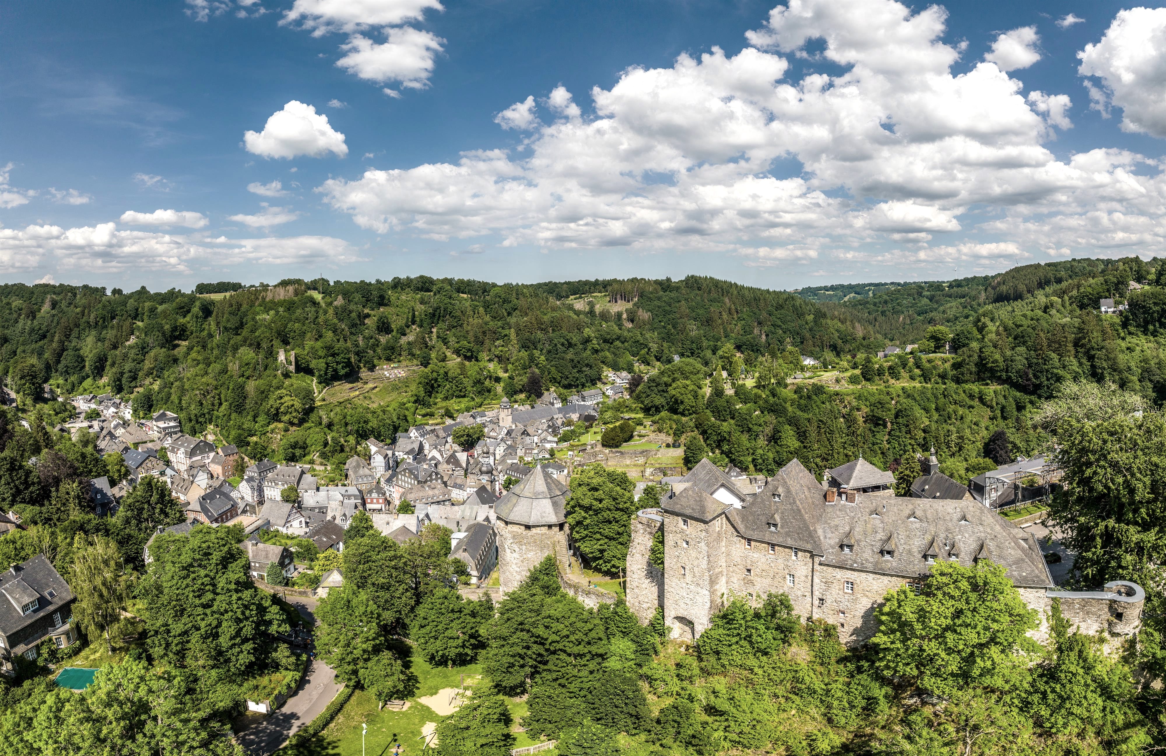 Die historische Altstadt spiegelt die lange Geschichte der Stadt wider: Burg Monschau stammt aus dem Mittelalter und wurde beinahe zur Ruine, bevor sie erneuert wurde. Heute beherbergt sie eine Jugendherberge und ein Altenheim. Prächtige Häuser wie das Rote Haus zeugen von der Blütezeit der Tuchindustrie im 18. Jahrhundert. Die letzte Tuchfabrik hat zwar schon lange geschlossen, doch die schönen Häuser sind geblieben.