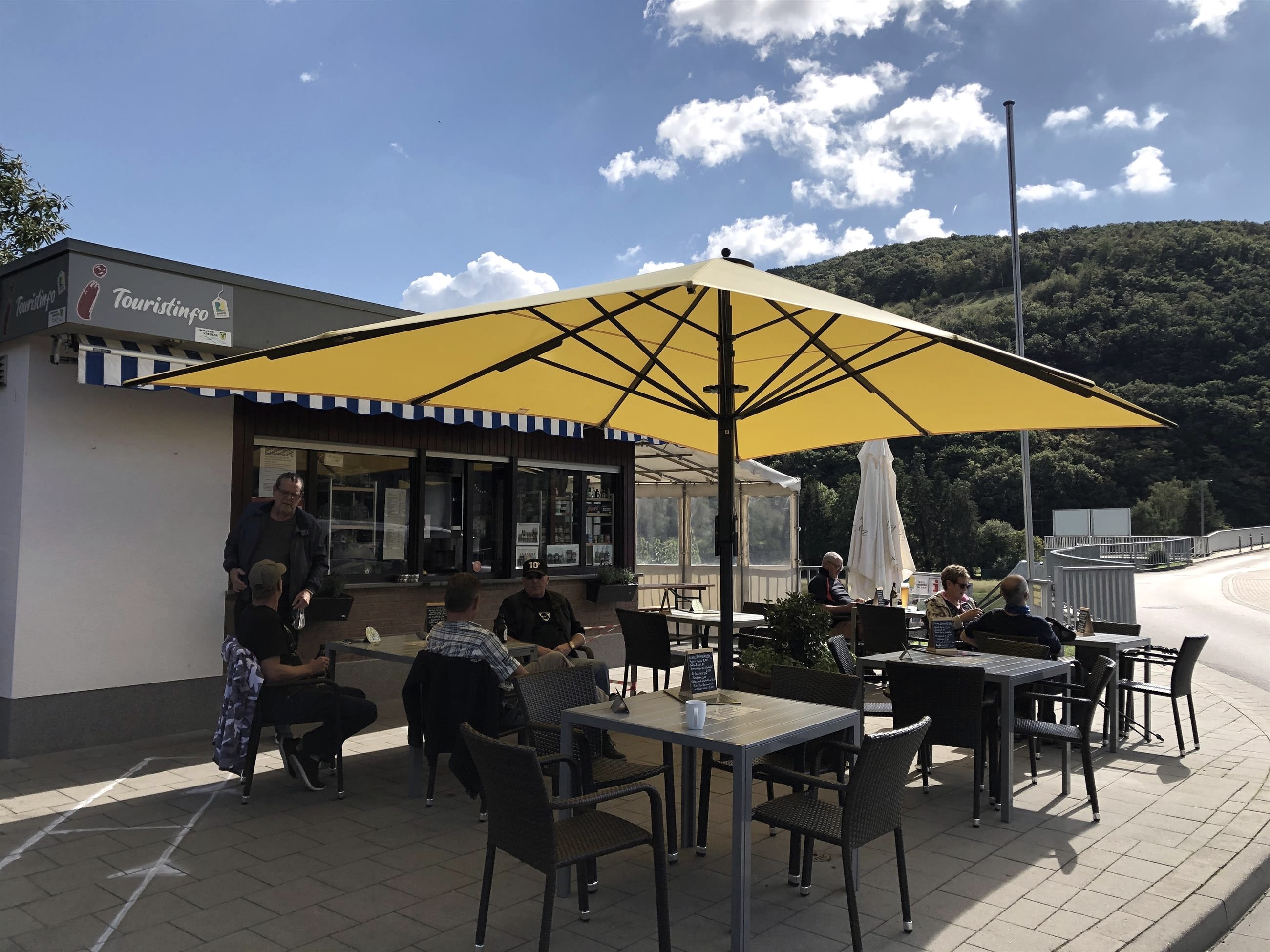 Neben kleiner Erfrischugen können Sie weitere Informationen sowie Wanderkarten und Prospekte über Obermaubach und der Region im Infopunkt erhalten.
