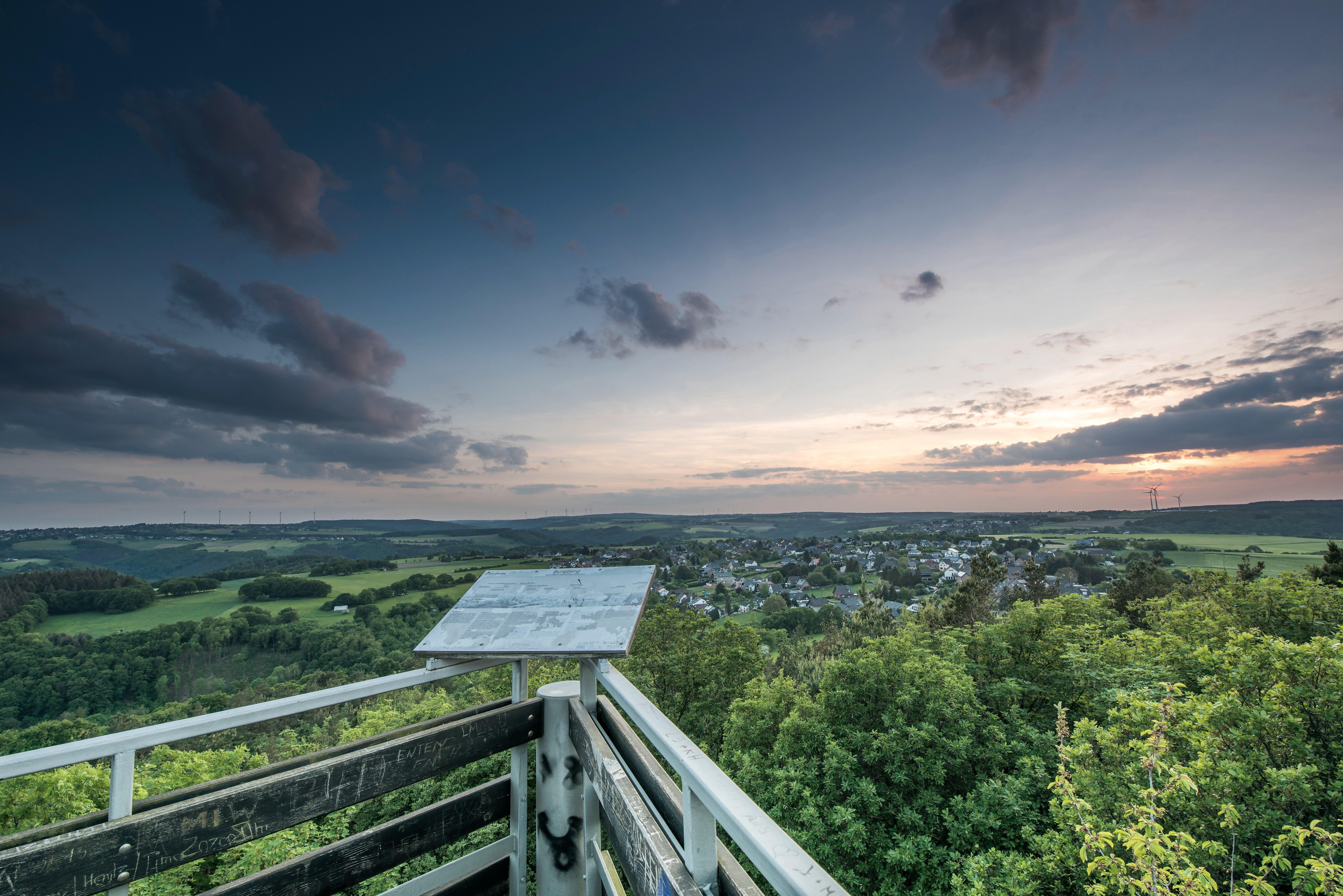 Der etwa 9 Kilometer lange Krawutschke Weg verläuft zwischen Obermaubach und Zerkall und führt dich einmal über den Burgberg. Oben angekommen, wartet der etwa 13 Meter hohe Krawutschketurm, der mit einem sagenhaften Panorama über die Höhenzüge der Eifel belohnt. Lass den Blick über die Rureifel mit Rur- und Kalltal schweifen. Bei guten Wetterverhältnissen kannst du sogar die Stadtsilhouette von Köln ausmachen. Nach kurzer Rast geht es bergab in Richtung Zerkall, von wo aus du mit der Rurtalbahn oder zu Fuß entlang des Wassers wieder zurück zum Ausgangspunkt in Obermaubach gelangst.