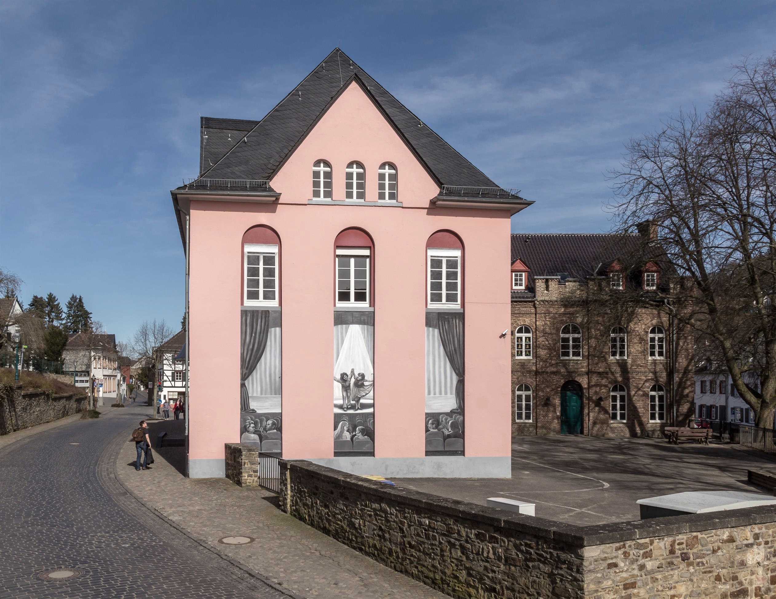 Mitten im Herzen der Stadt Bad Münstereifel, direkt neben der alten Stiftskirche, steht das Kulturhaus theater 1. In den Räumen der 1890 erbauten Knabenschule haben die beiden Schauspieler vom "theater 1", Christiane Remmert und Jojo Ludwig, ihren Traum verwirklicht und dort ein Zentrum für exklusive und qualitativ hochwertige Kultur geschaffen. Allein mit ihrem privaten Geld und ohne Subventionen haben die beiden seit der Eröffnung im Oktober 2007 das Haus zur ersten Adresse in Sachen Kultur etabliert und das nicht nur für Münstereifel. Vielmehr konnte sich das Kulturhaus auch weit über die Grenzen des Kreises Euskirchen hinaus einen ausgezeichneten Namen machen. Außer den eigenen Inszenierungen der beiden Betreiber werden Gastspiele verschiedener, häufig auch internationaler Künstler aus den Bereichen Konzert, Lesung, Figurentheater, Tanz, Schauspiel und Kabarett veranstaltet. Daneben gibt es wechselnde Ausstellungen von Malerei, Plastiken und Fotografie. Ebenso werden die Räumlichkeiten auch gern für private oder geschäftliche Anlässe, wie zum Beispiel Hochzeiten, Geburtstage oder Firmenjubiläen in Anspruch genommen, die meistens in Verbindung mit einer Theatervorstellung gefeiert werden. Das Kulturangebot erstreckt sich über zwei Etagen, im Erdgeschoss befindet sich der Veranstaltungsraum mit 99 Plätzen, im ersten Stock ein Parkettsaal, der zum einen ein Tanzstudio beherbergt, zum anderen finden dort regelmäßig Seminare der Volkshochschule sowie Gesangs-, Tanz- oder Meditationskurse statt. Ein weiterer Raum, ebenfalls im ersten Stock, bietet Möglichkeiten für Veranstaltungen im kleineren Rahmen oder zur Bewirtung von Gästen bei privaten Vermietungen. Sämtliche Besucher (und auch die Presse) sind sich darüber einig, dass Münstereifel hier ein Kleinod besitzt, das sowohl eine angenehme, liebevoll gestaltete Atmosphäre als auch ein Programm zu bieten hat, welches im gesamten Kreis einmalig sein dürfte.