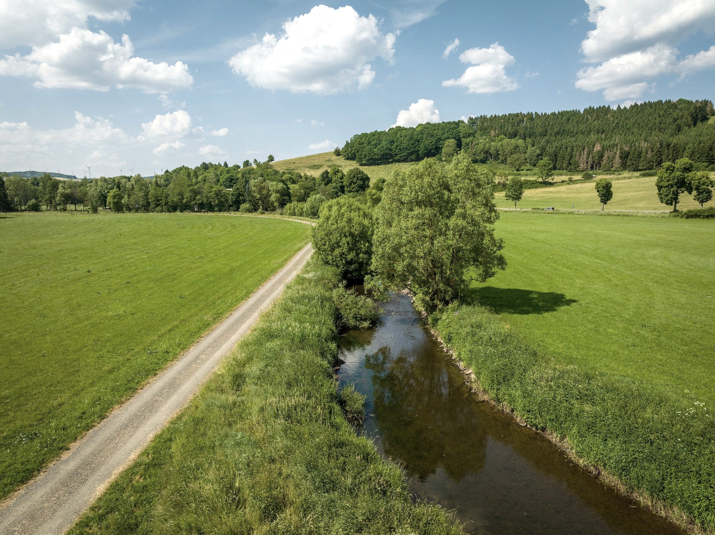 Charakteristisch ist die ruhige, lineare Führung des Tals: kein dramatisches Spektakel, sondern ein kontinuierliches Unterwegssein, das Raum für Wahrnehmung lässt. Die Kyll ist der längste Fluss der Eifel und auch für den Süden der Eifel der wasserreichste Fluss. Sie ist Lebensraum für Forellen, Wasseramseln und Eisvögel und begleitet Wandernde wie Radfahrende mit einem gleichmäßigen, fast meditativ wirkenden Flusslauf. Wer dem Tal folgt, erlebt die Eifel in einer ihrer ehrlichsten Formen – geologisch geprägt, historisch gewachsen und bis heute erstaunlich unverstellt.