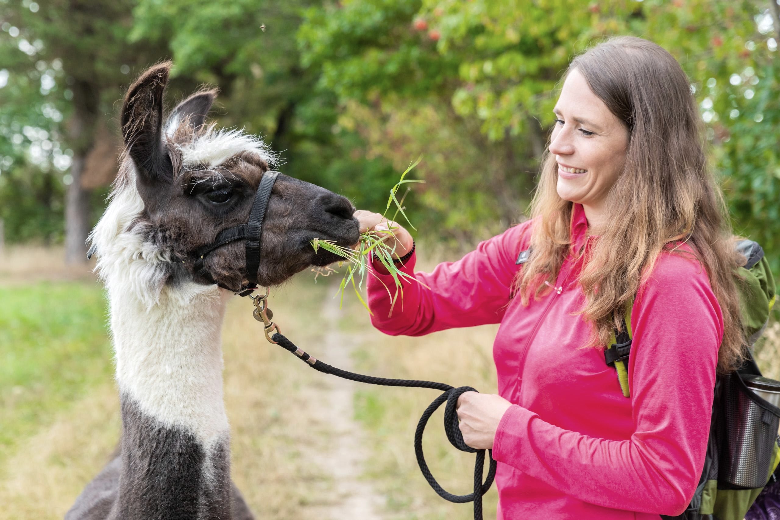 Unsere Wanderungen führen größtenteils auf Wald- und Wiesenwegen durch die Eifel. Nach einer Einführung mit Wissenswertem zur Art und Wesen unserer Lamas und Alpakas, lernen Sie zur Vorbereitung auf die Wanderung in Tuchfühlung die unbekümmerten, sanften Wesen näher kennen. Genießen Sie die wunderschöne Natur der Eifel in verschiedenen Jahreszeitimpressionen mit wechselnden Landschaften und Aussichten in einem gemächlichen Schritttempo.