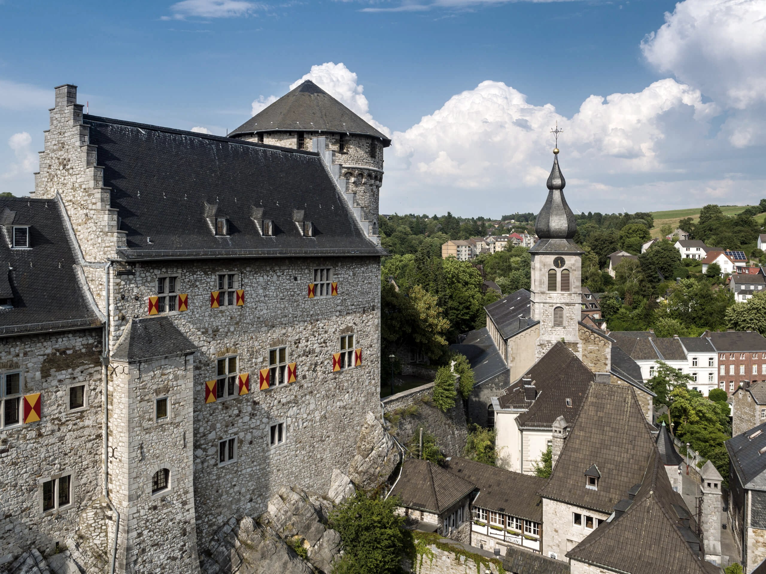 Durch den Stolberger Wald fährst du schließlich zurück in die Kupferstadt Stolberg und radelst in die gemütliche Altstadt ein. Hier bietet sich ein Spaziergang durch Stolberg mit Ausblick auf die mittelalterliche Burg an. Zahlreiche Restaurants bieten die Möglichkeit zur Stärkung nach dem Sport.