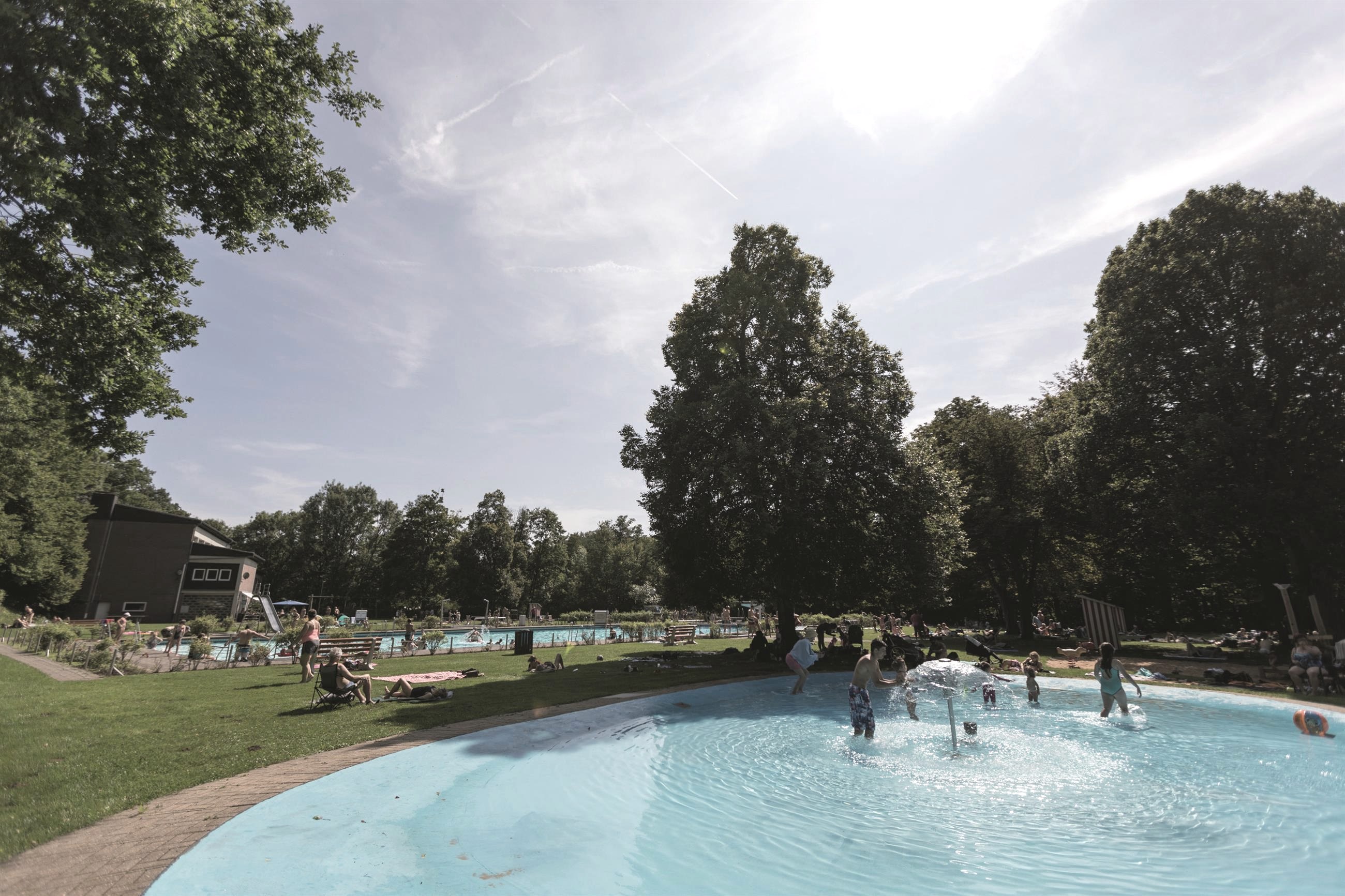 Mit seinen 20 mal 50 Metern hat das Schwimmbecken Olympiamaße. Das Wasser hat immer eine Mindesttemperatur von 22° C. Eine neue Attraktion für Kinder ist der Matschplatz “Kleine Möwe”, sowie der große Kletterdschungel. Das warme Planschbecken ist schon für die ganz kleinen Badegäste ein echter Hit. Unsere sportbegeisterten Gäste lieben es sich beim Volleyball auf unserem turniermaßgroßem Feld mit feistem Quarzsand zu messen. Der Basketballkorb, die Tischtennisplatten oder das Bodentrampolin laden ebenfalls zum auspowern ein. Wer sich den ganzen Tag im Wasser verausgabt und auf der Wiese gesonnt hat, kann sich mit kalten und warmen Snacks und Getränken aus dem Kiosk versorgen.