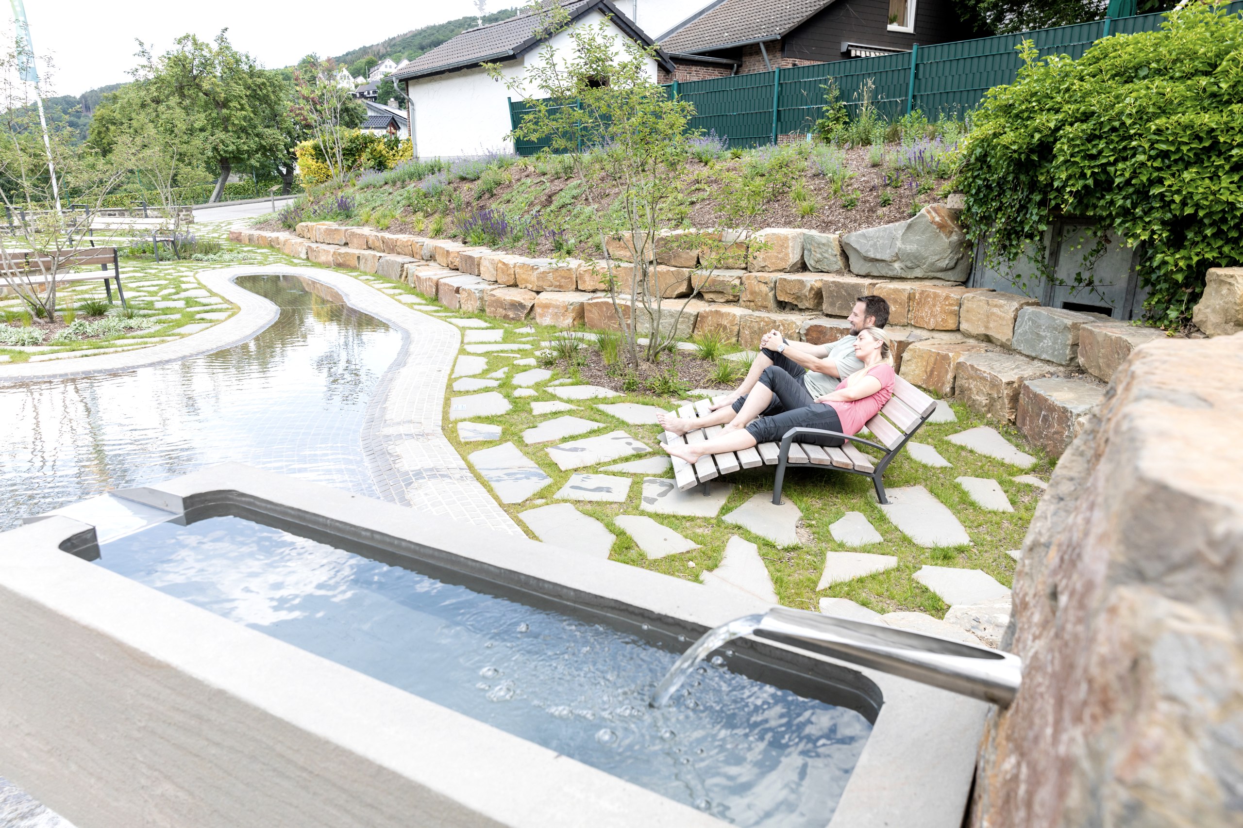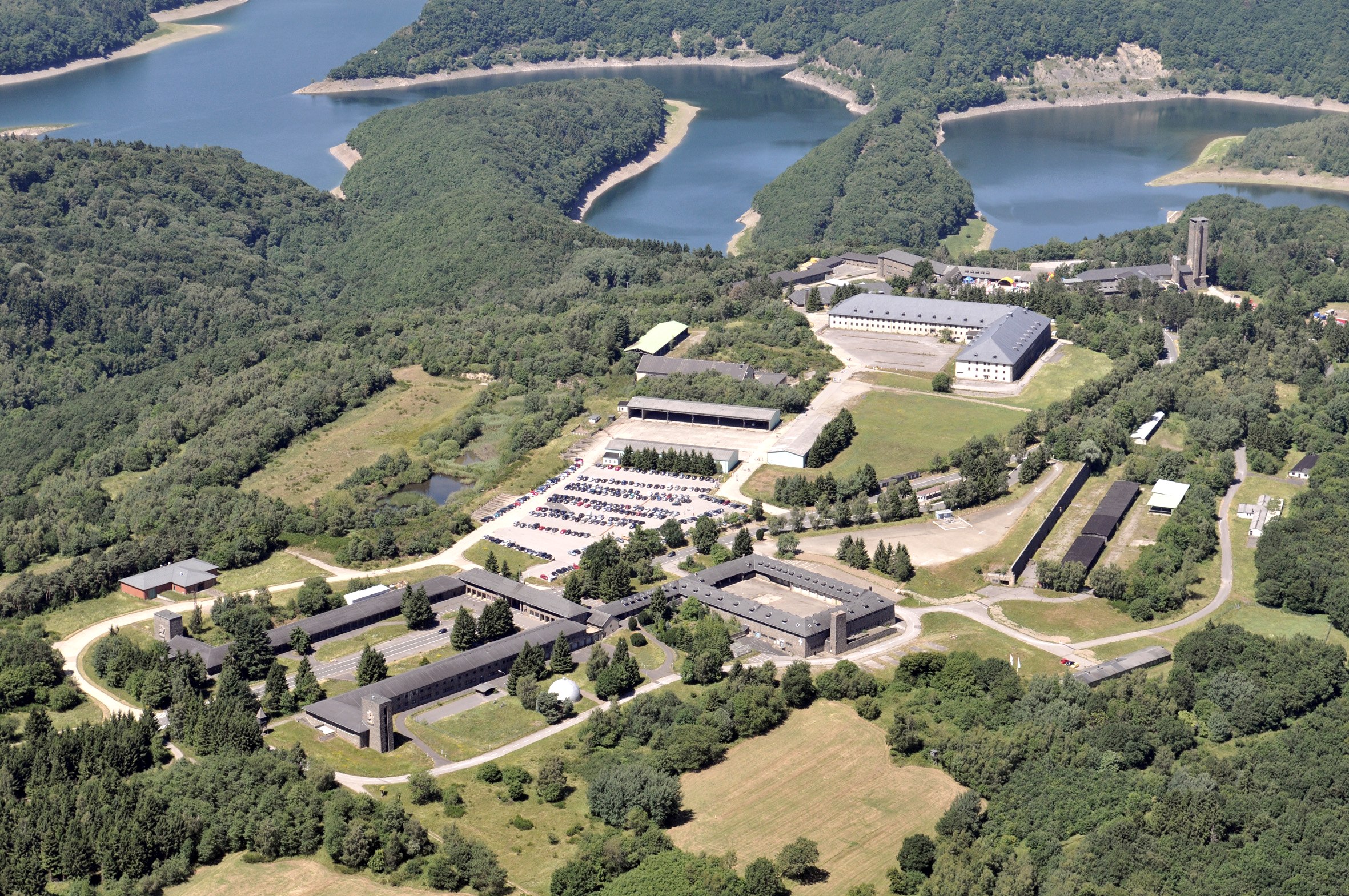 Der Anstieg nach Vogelsang-ip liegt mit 16 % Steigung vor uns. Vorbei an den Sportanlagen und am „Fackelträger“ geht es bergauf. Eine Anstrengung, die sich lohnt, wenn man das neue Forum Volgelsang, den Ausblick auf Urftsee und Kermeter, den Info- und Ausstellungsbereich oder auch die Gastronomie erreicht hat. Raus aus Vogelsang geht es über die breite Teerstraße bis zum Kreisverkehr „Walberhof“. Hinter dem Parkplatz geht es gut geschottert und steil bergab nach Einruhr. Die Stecke ist als Radweg im Nationalpark ausgeschildert und führt im letzten Stück auf der B 266 an den Rand des Dorfes und an den Obersee. Sie biegen rechts ab in die Heilsteinstraße.