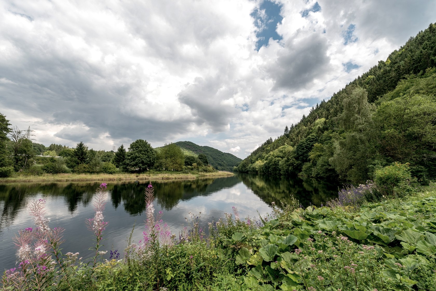 Die ersten 10 Kilometer fahren Sie auf dem RurUfer-Radweg (RUR). Am Kreisverkehr geht es ins Städtchen bis zur Steinbrücke. Hier folgen Sie dem Flusslauf auf dem Seerandweg an unserem ersten See vorbei bis zum sehr bekannten Jugendstilkraftwerk. Kraft ist ein gutes Stichwort. Kurze Zeit später brauchen Sie diese für den ersten Aufstieg, der uns auf die Höhe des Staudammes für unseren zweiten See bringt, dem Schwammenaueler Stausee, auch Rursee genannt.