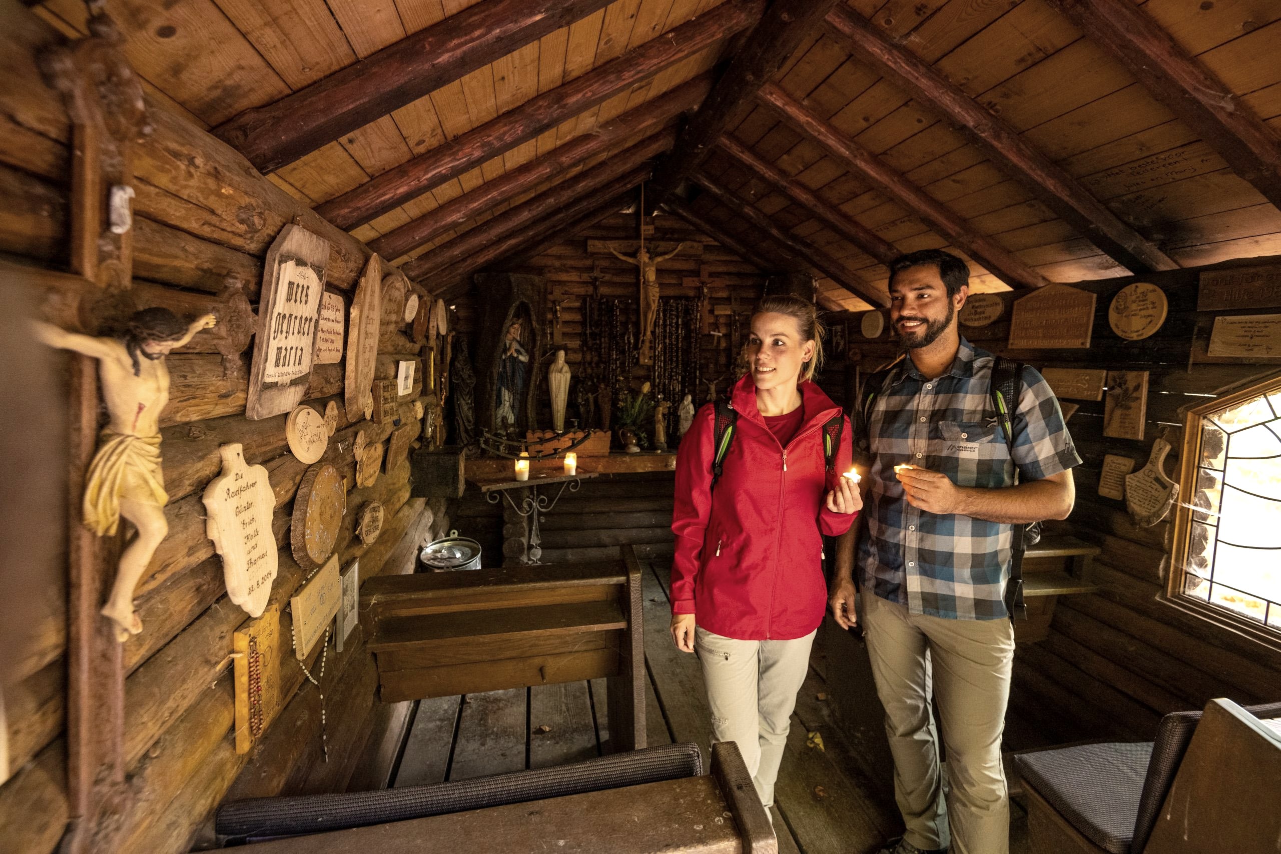 Im Wald oberhalb von Erkensruhr gelegen, steht die idyllische kleine Kapelle im Wald. Es ist ein schöner Ort, den sich Ottmar Wollgarten und seine Mitstreiter Anfang der 1980er Jahre für die Errichtung des kleinen Gotteshauses ausgesucht haben. Leise plätschert Wasser in einen hölzernen Brunnentrog. Wie die zahlreichen Votivtafeln zeigen, pilgern immer wieder Menschen hierher, um die Mutter Gottes um Hilfe und Fürsprache zu bitten.