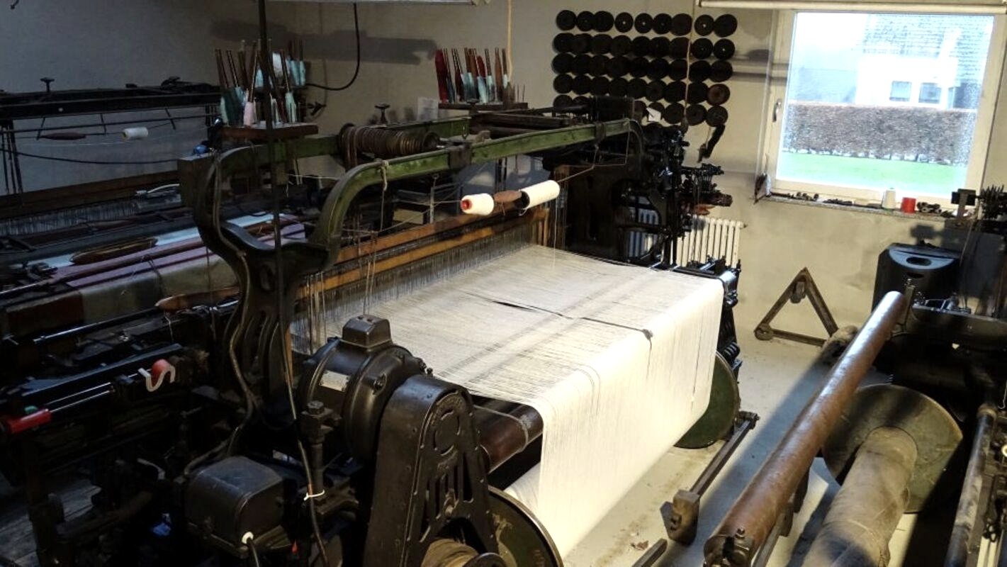Die Ausstellung zeigt vier Webstühle und zwei Spulmaschinen, die voll funktionstüchtig sind und im Rahmen der Besichtigung vorgeführt werden.