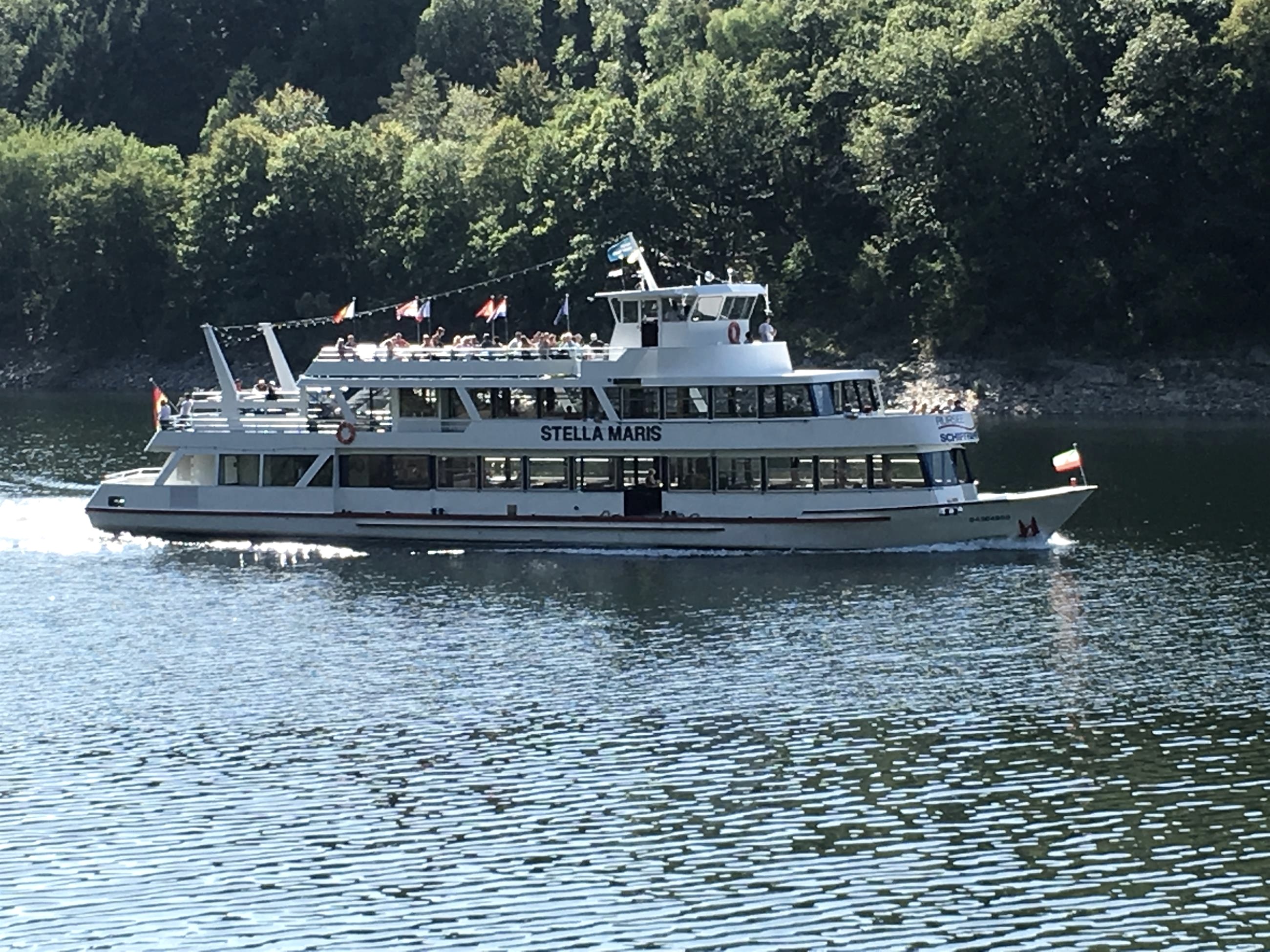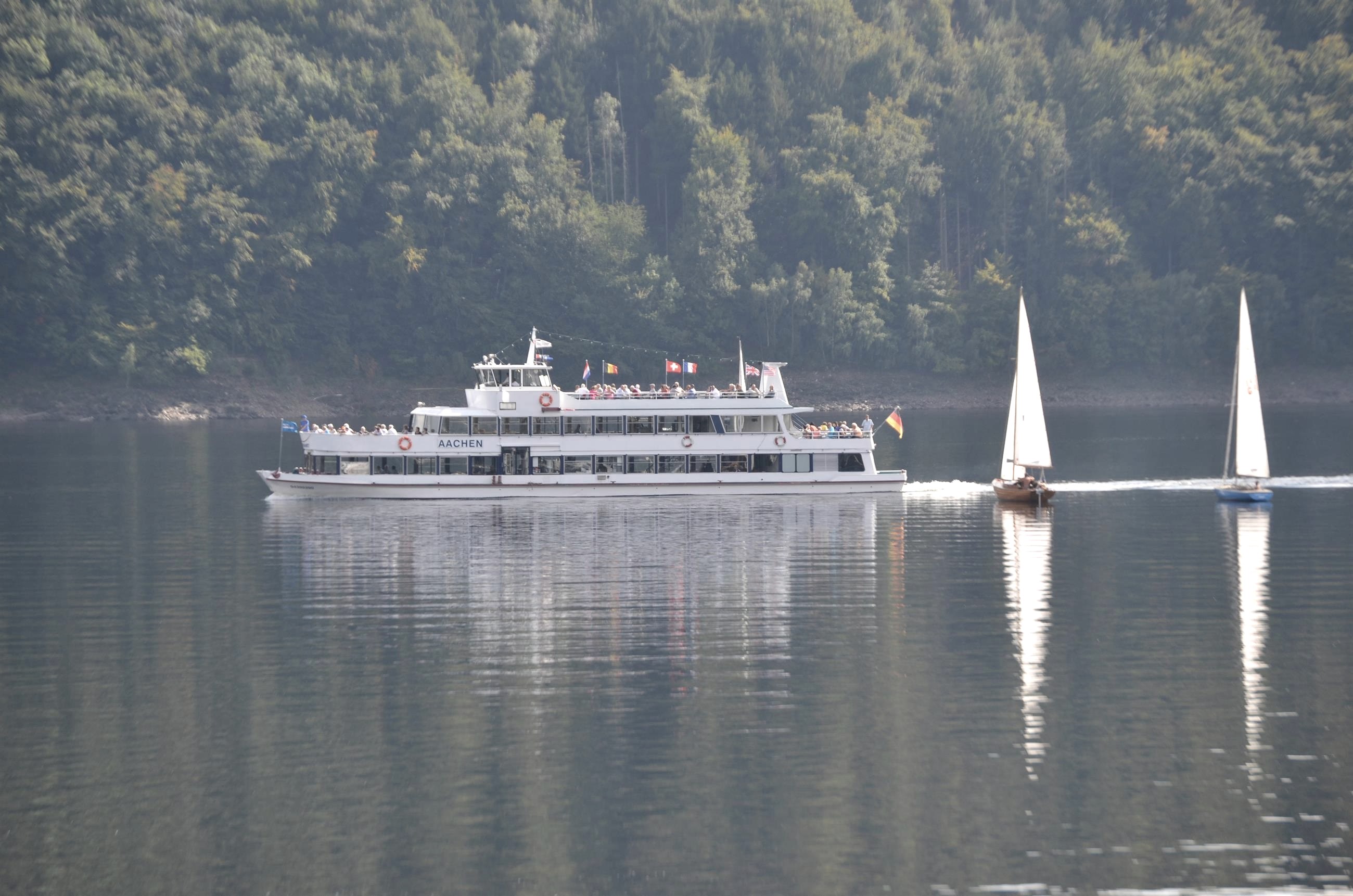Die drei Talsperren Rursee Schwammenauel, Obersee und Urftsee bilden die Eifeler Seenplatte. Hier ist die weiße Flotte der Rursee Schifffahrt zu Hause. Zusammen mit dem Obersee ist der 8 km² große Rursee rund 20 km lang.