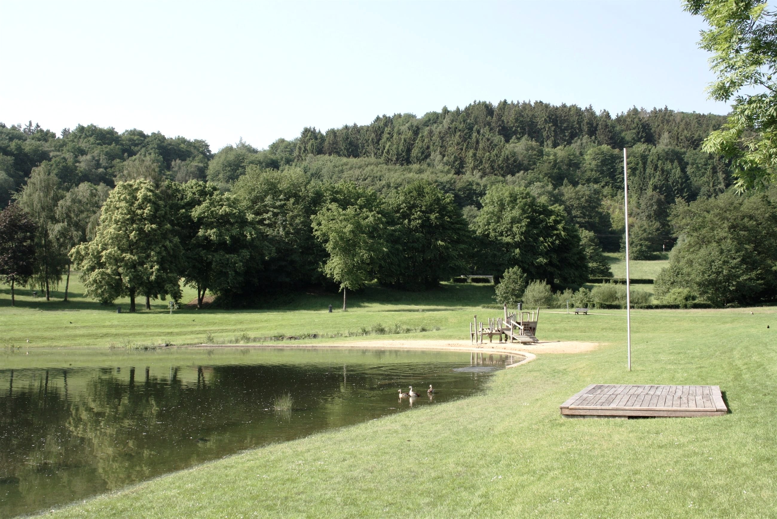 In unmittelbarer Nähe zum Wohnmobilstellplatz befinden sich der Eiserbachsee mit einem frei zugänglichen schönen Natufreibad, einer weitläufigen Liegewiese, einem kleinen Spielplatz, viel Platz zum Spielen für Groß und Klein. In den Sommermonaten bietet ein Imbissstand ein kleines gastronomisches Angebot.