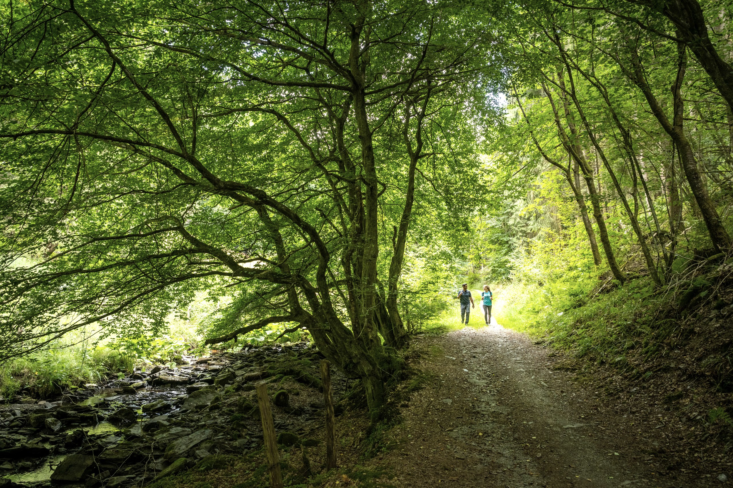 Starting at the church square in Simmerath, you soon reach the Tiefenbachtal nature reserve. As soon as you leave the first trees of a small wood behind you, the Mariagrube is in sight. This former slate quarry from the 19th and 20th centuries is one of Simmerath's earliest "commercial enterprises". Slate was mined underground here from 1847 to around 1924. A spoil heap is a reminder of the decades of slate mining. Following the Tiefenbach stream, the grove becomes a real forest and you reach deeper into the nature reserve until an old oil mill provides an insight into the 17th century: The building complex still gives a very good idea of how edible oils were produced here back then. Up to now, the route has been rather uphill, but the path soon becomes steeper and after a walk of around two kilometers, the forest thins out and you reach the district of Huppenbroich. Here you can admire the Christkönig Chapel, which had to overcome many obstacles before it was inaugurated in 1947. The construction of the church suffered particularly during the Second World War under National Socialism; it was only during the course of reconstruction that the villagers were able to fulfill their dream of having their own chapel. From Huppenbroich, the route then leads back to Simmerath, where the sight of St. Johann Baptist Church forms a beautiful conclusion to the hike.