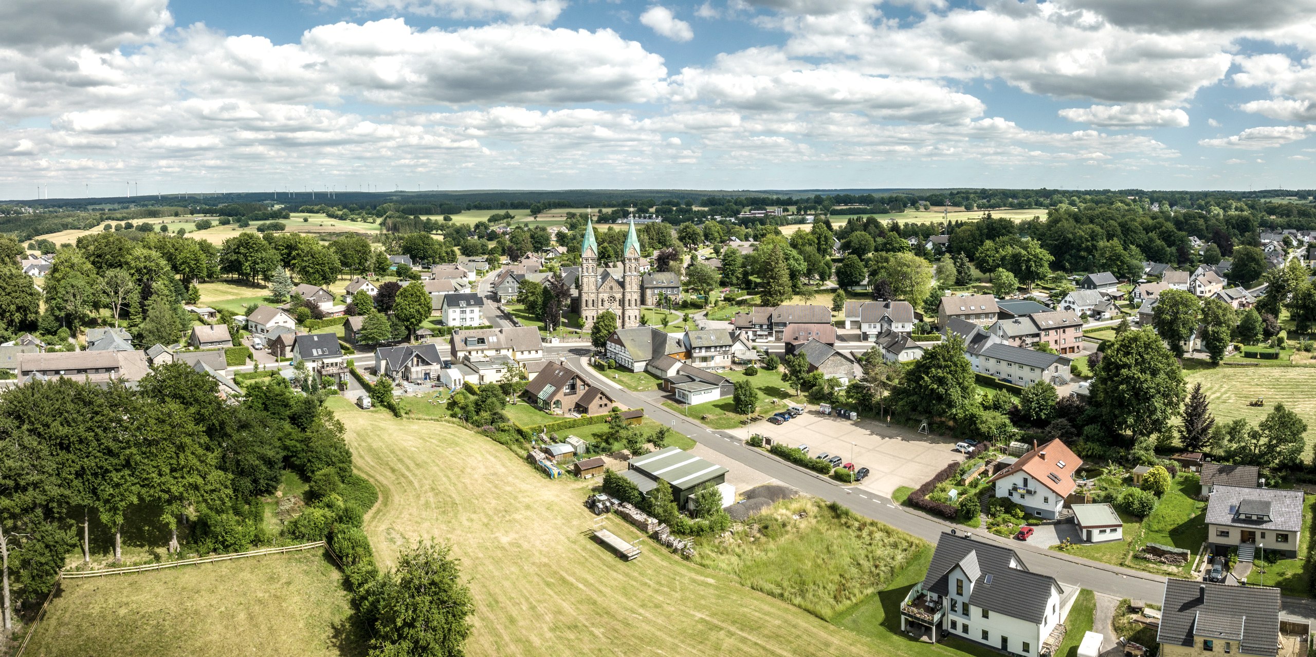 The Kalterherberg village tour is a hiking tour of around 8 kilometers in length, which starts from the hiking parking lot 'Am Eifeldom'. The route offers a constant change between typical village scenes and an impressive cultural landscape with breathtaking views. Numerous sights along the way provide an insight into the history of the village and tell of the simple and God-fearing life in times past and present.