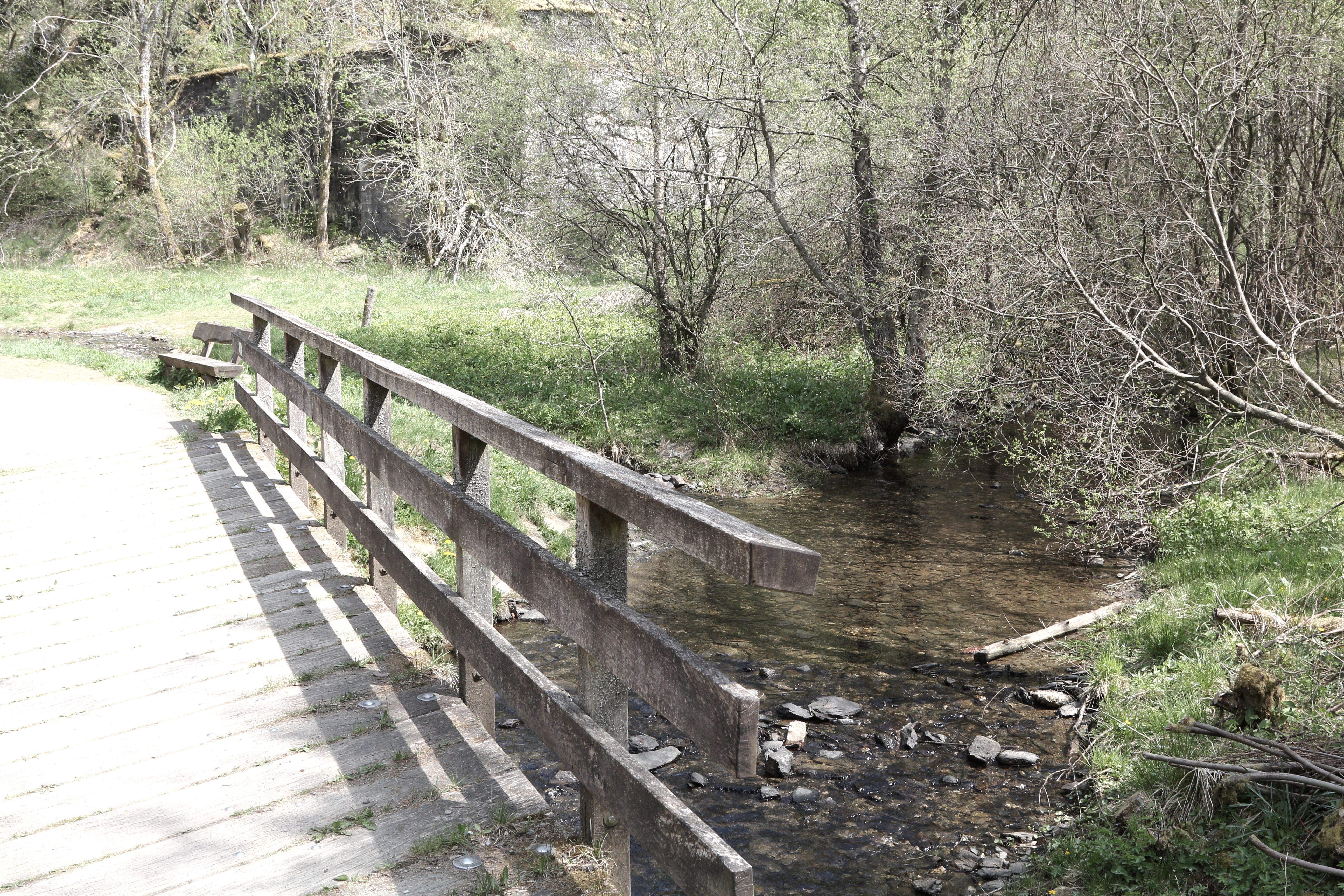 At the Antonius Bridge, the route changes to the other side of the stream. According to our hiking flyer, which we received at the Höfen National Park gate, a very special natural spectacle awaits hikers here in spring. Millions of blooming daffodils transform the gently sloping hillside and the valley floor into a bright yellow carpet of flowers.