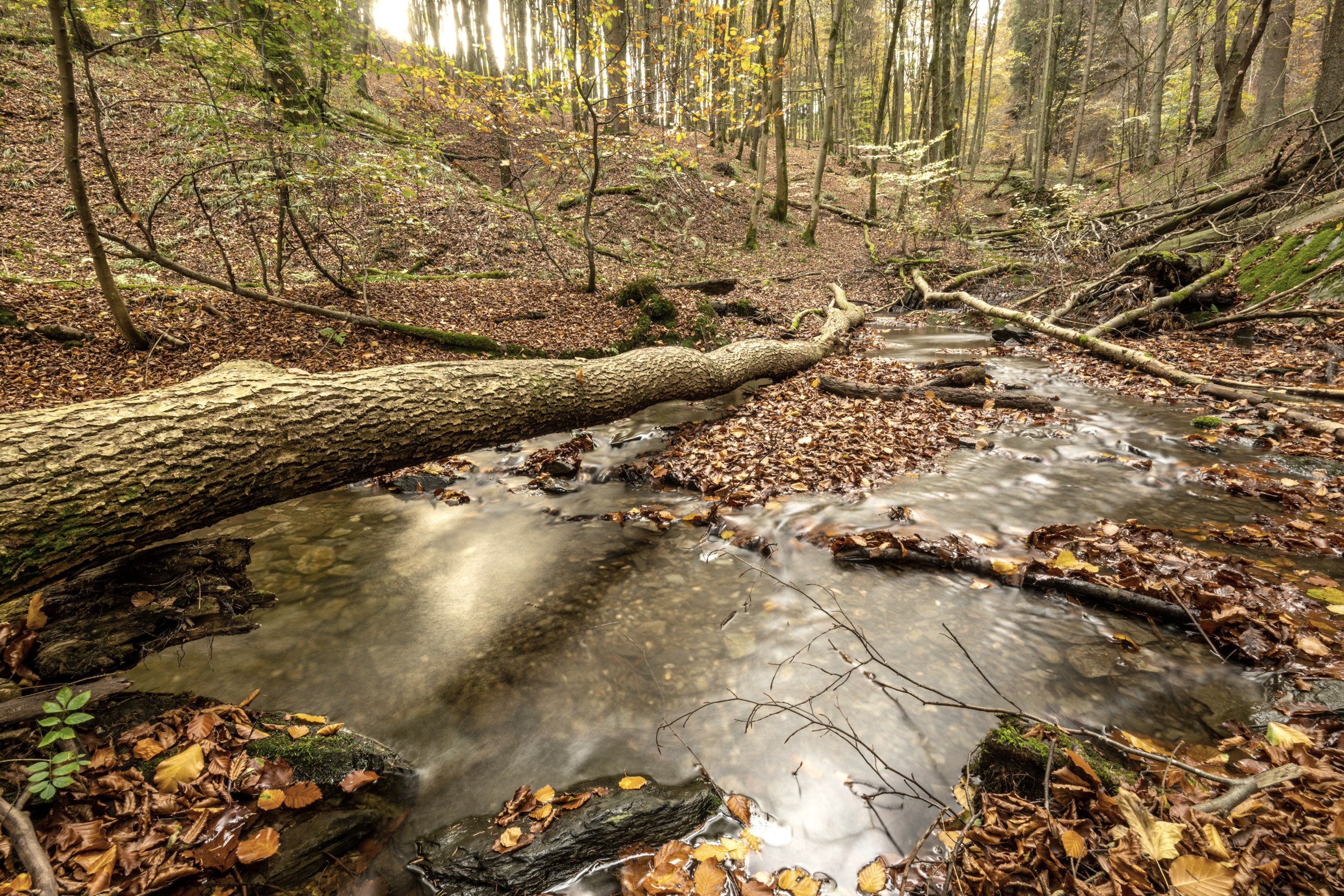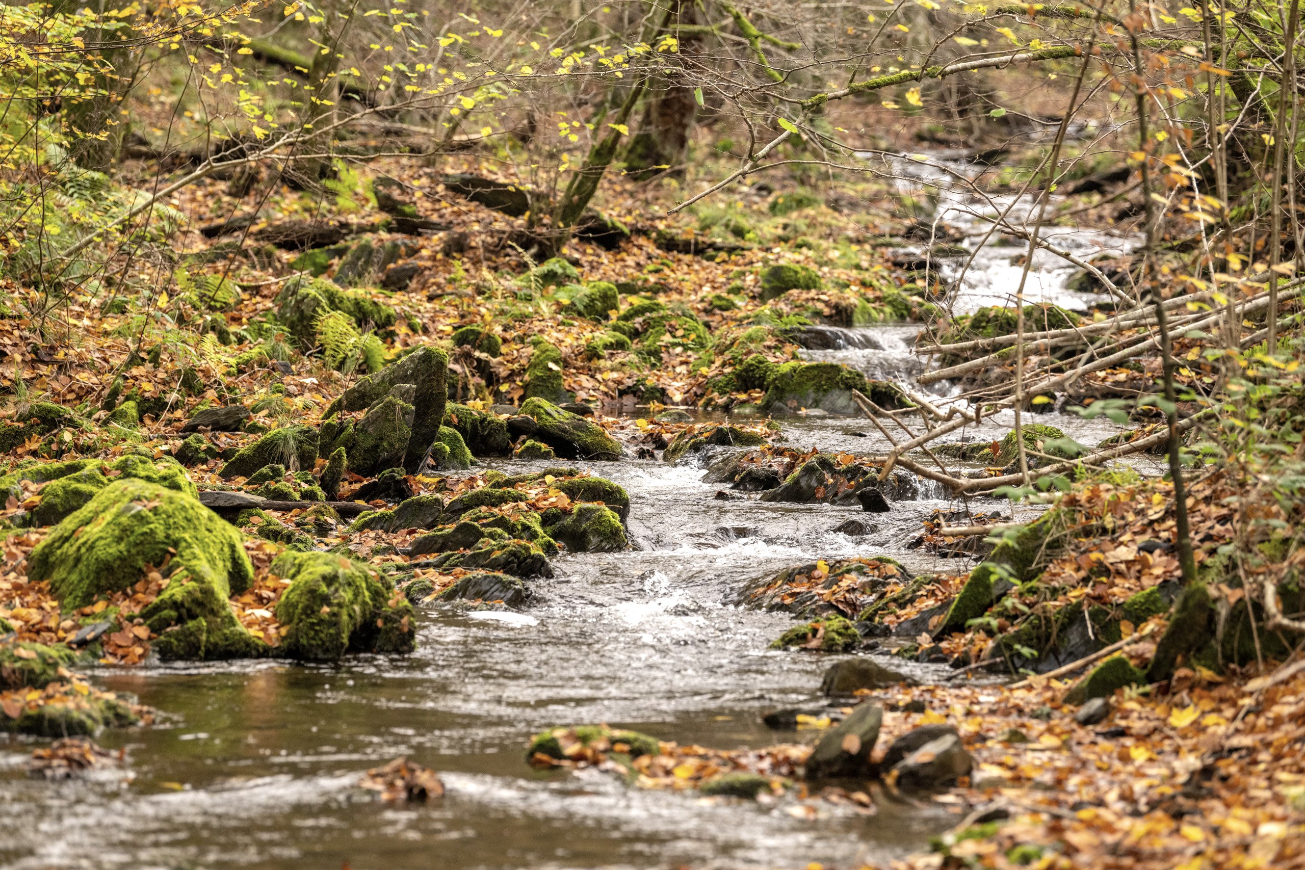 The circular trail leads through the varied forest landscape in and around the Eifel National Park. From Einruhr, the trail runs through the Erkensruhr valley to the forest chapel in Hirschrott. In the idyllic Püngelbach valley that follows, you pass a well-known weather protection hut. Shortly before returning to Einruhr, the Eifelblick Wolfshügel offers a fantastic view.
