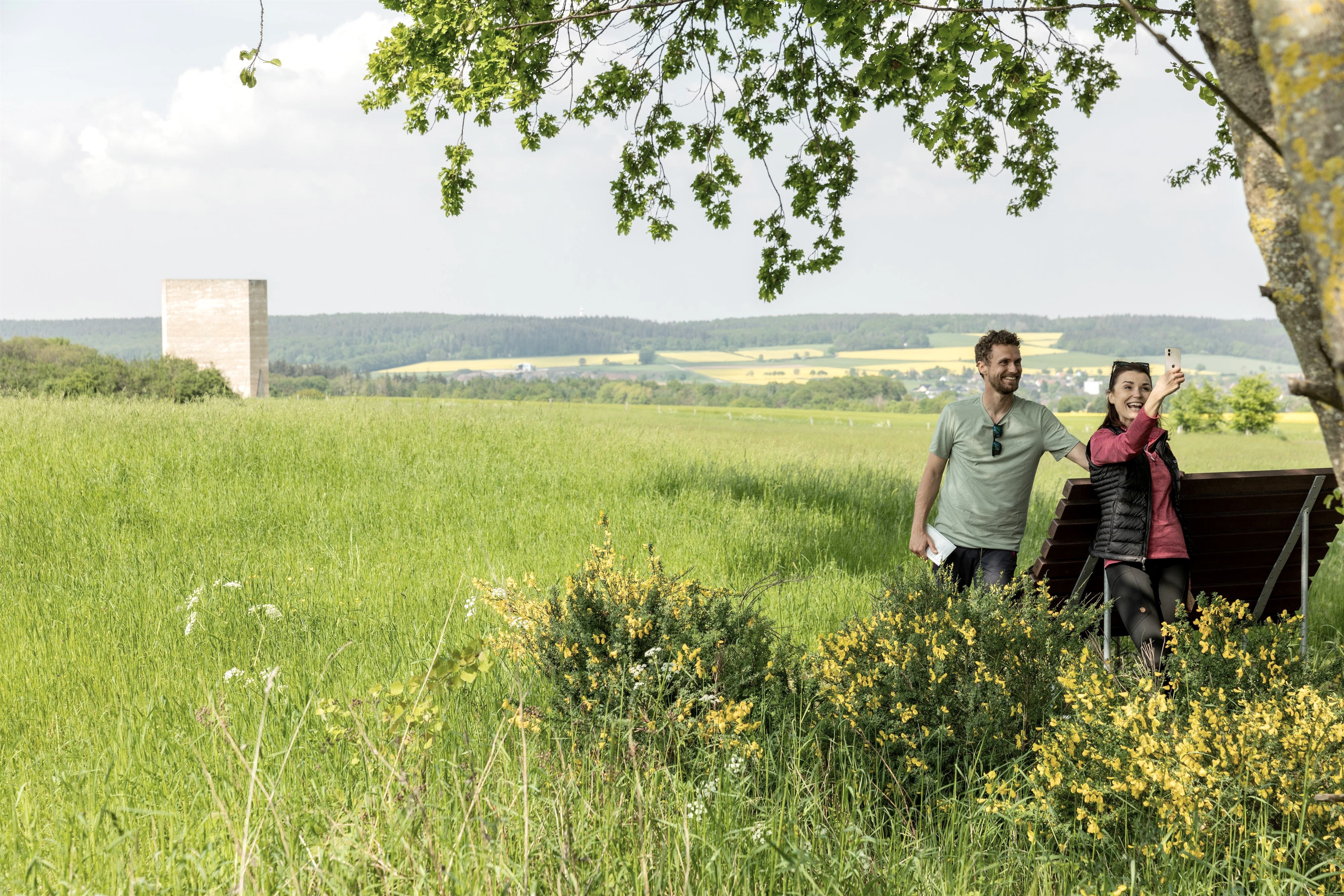 The chapel is modelled on the hermitage of Brother Klaus and is therefore not suitable for large groups of visitors. Pilgrim groups with more than ten people are therefore requested to register in advance. The field chapel is not intended as a destination for people interested exclusively in architecture. The field chapel can only be reached on foot in 10 to 15 minutes via a slightly ascending path. Parking for cars is only possible in the signposted car park on the outskirts of Wachendorf in the direction of Lessenich
