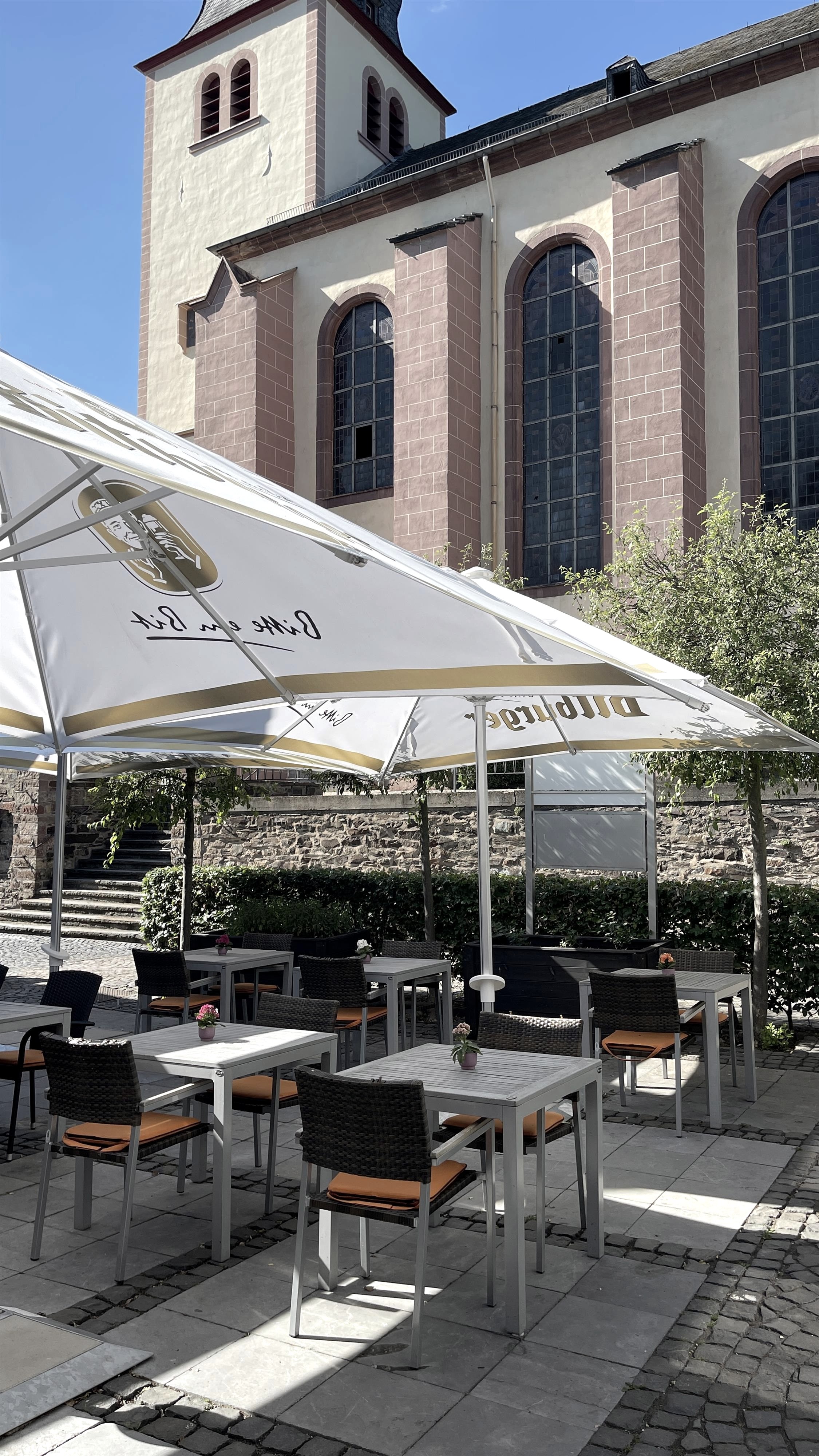 The Café EifelGarden, located directly at the parish church of St. Clemens in Heimbach, invites you to linger on several levels and a beautiful green terrace.