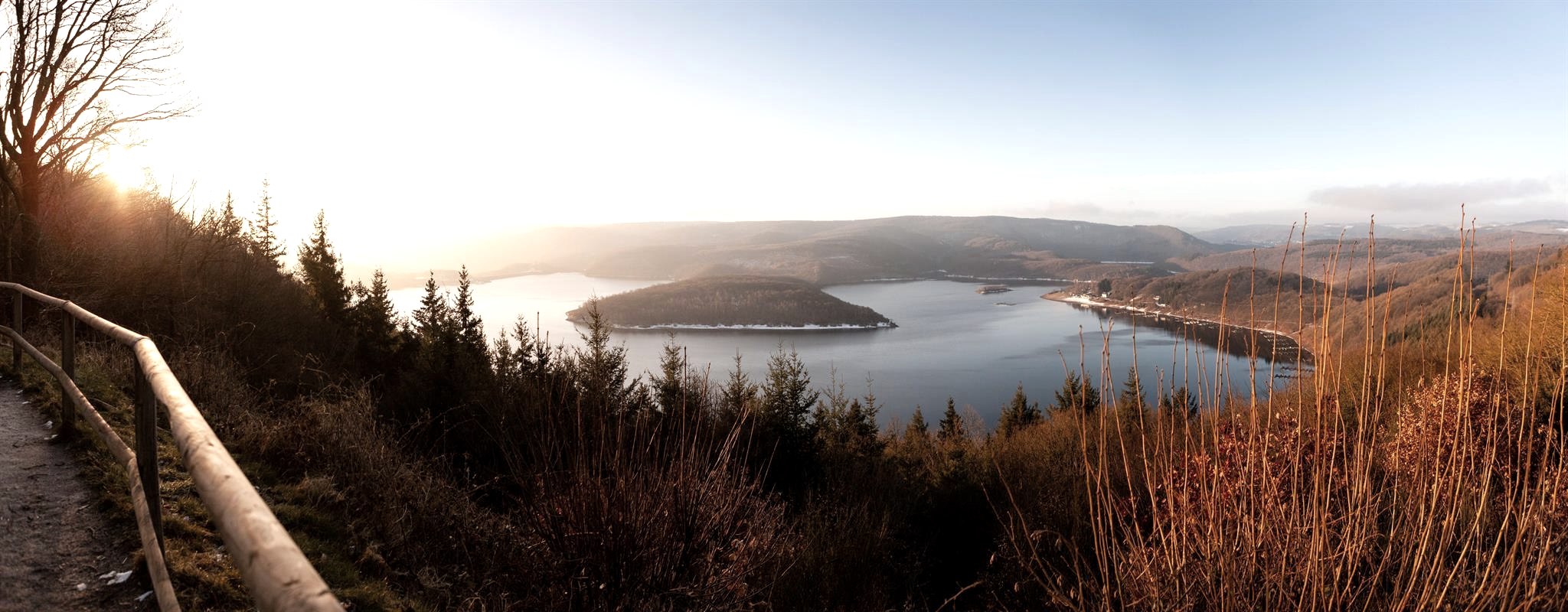 The Eifel view "Schöne Aussicht" on the "Simonsley" (415 metres above sea level) offers you an impressive panorama above the Rursee in a south-east to south-west direction, with the "Kermeter", a core area in the Eifel National Park, catching your eye.