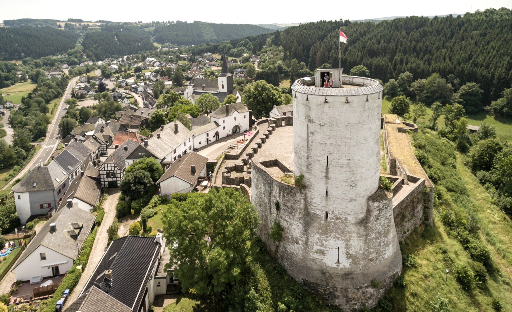 The starting and finishing point of this hike is, of course, a castle. To be precise, the hilltop castle of Reifferscheid. The center of Reifferscheid can be easily reached by public transport (TaxiBusPlus from Hellenthal train station). It is only a ten-minute walk from the bus stop in Reifferscheid to the castle. After the start, the route heads north via the castle courtyard entrance and along the Olef up to the Kirchenberg. This is walked around and then downhill to Blumenthal and on to the Kuhberg. The route then continues to the old castle ruins in the "Altenberg" area and back to Reifferscheid via some steep hairpin bends.