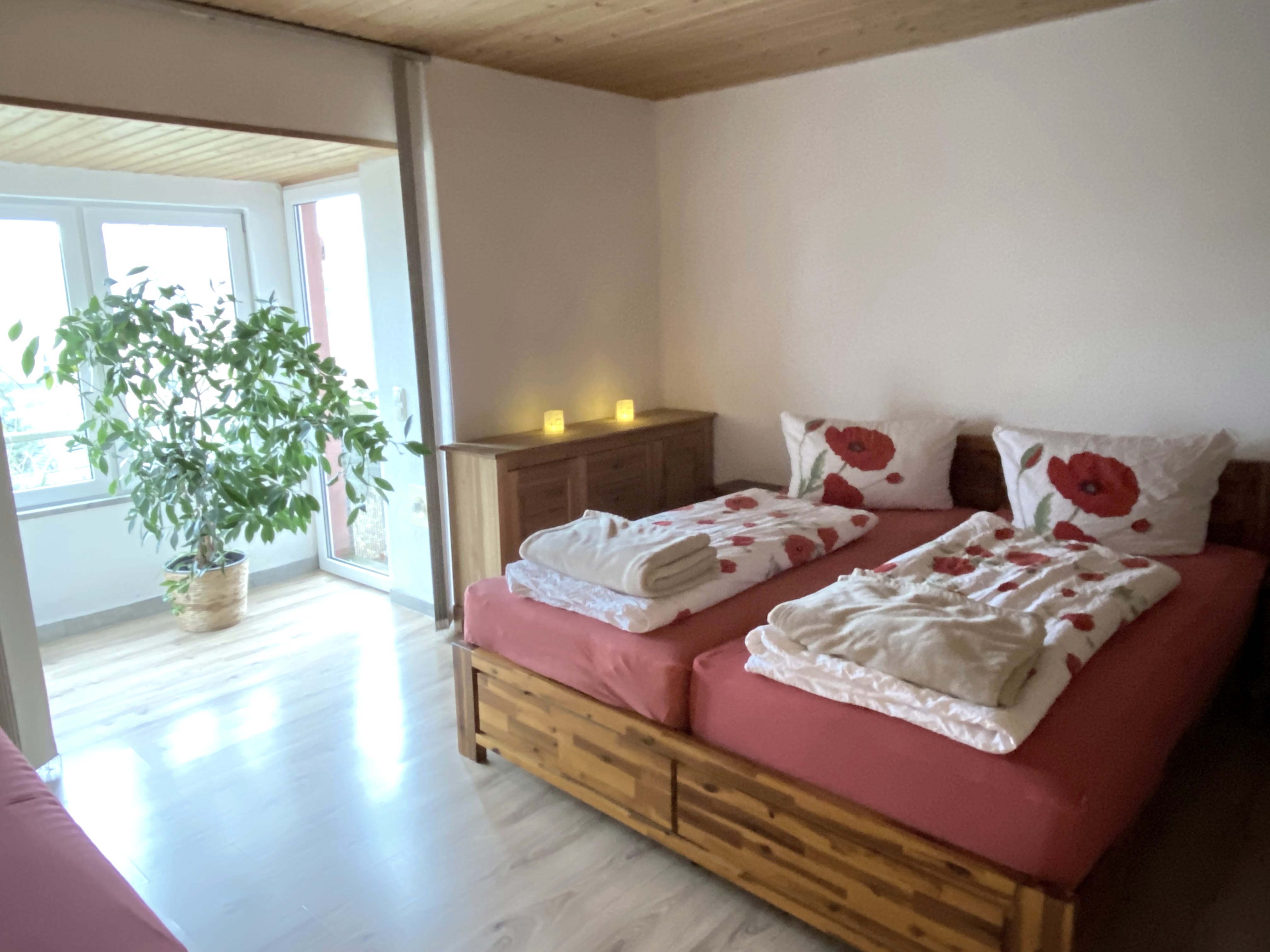 Quietly located in the greenery, bright and modern: Hiking and forest paths, a supermarket, star park, and a playground are quickly accessible. Sunny balcony, kitchen with stove and oven, a double room plus a single bed, nice sofa with a large television, and a bathroom with shower/bathtub and bidet.