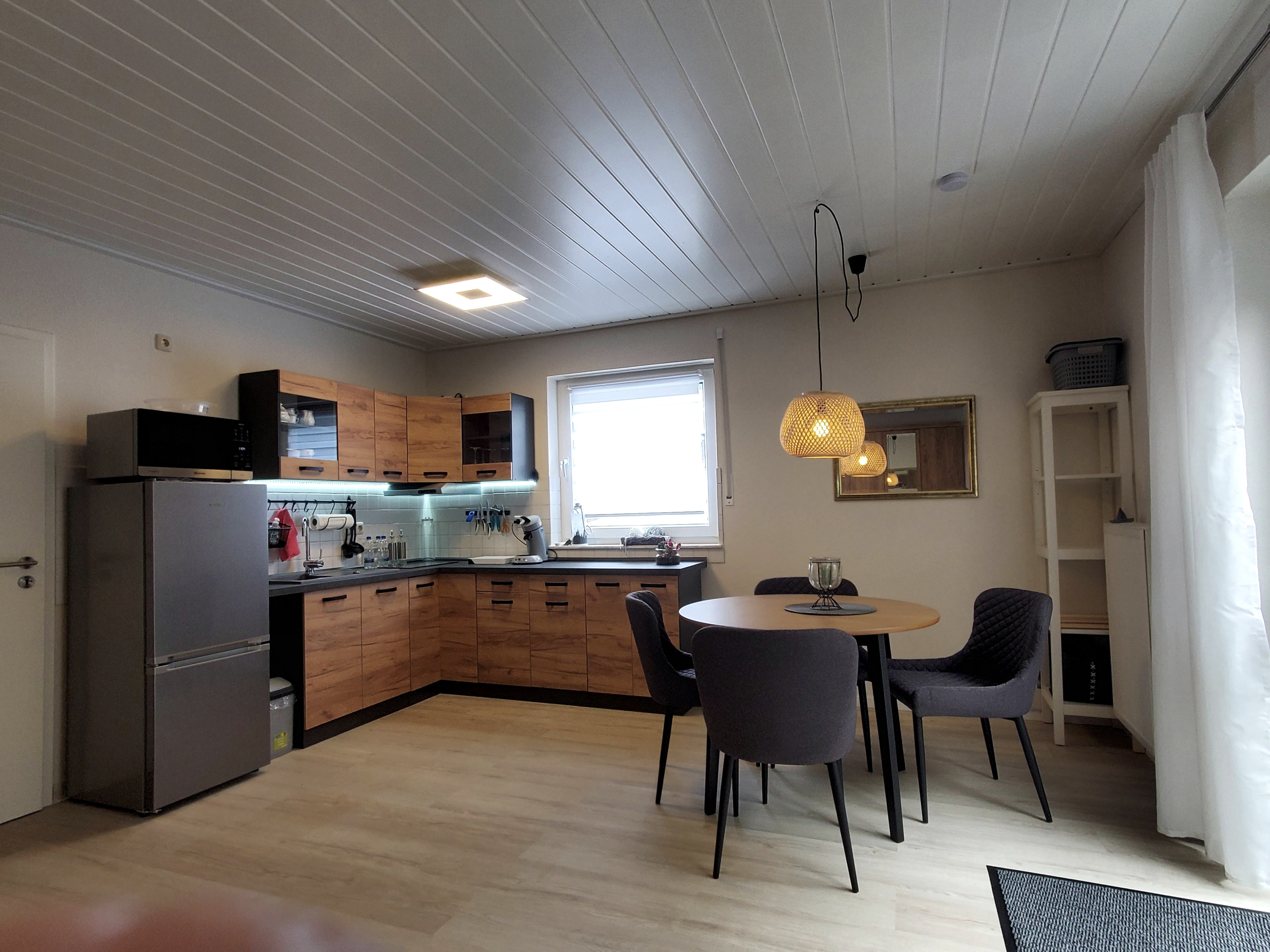 coffee pad machine, crockery etc.), dining area for 4 people,