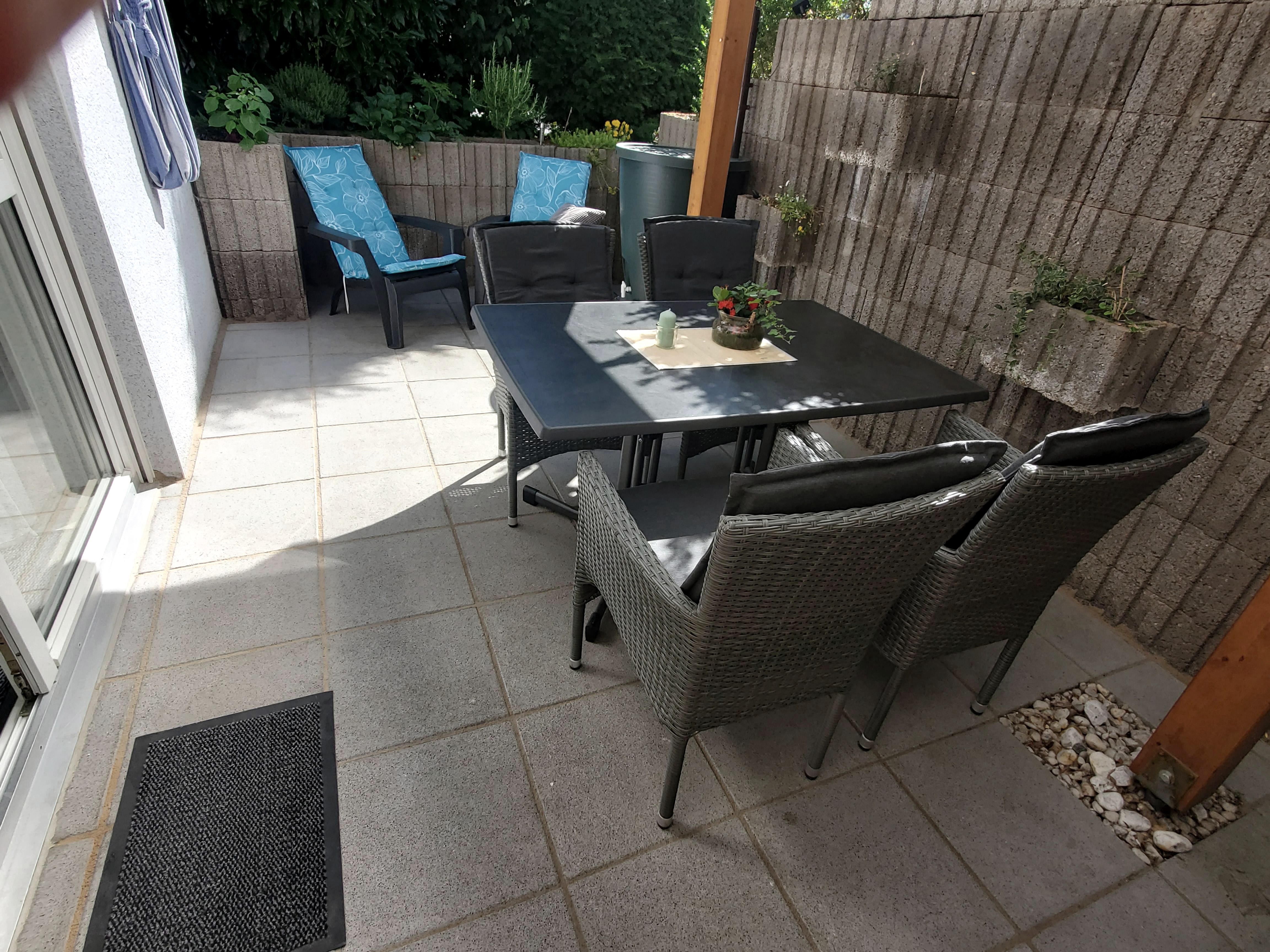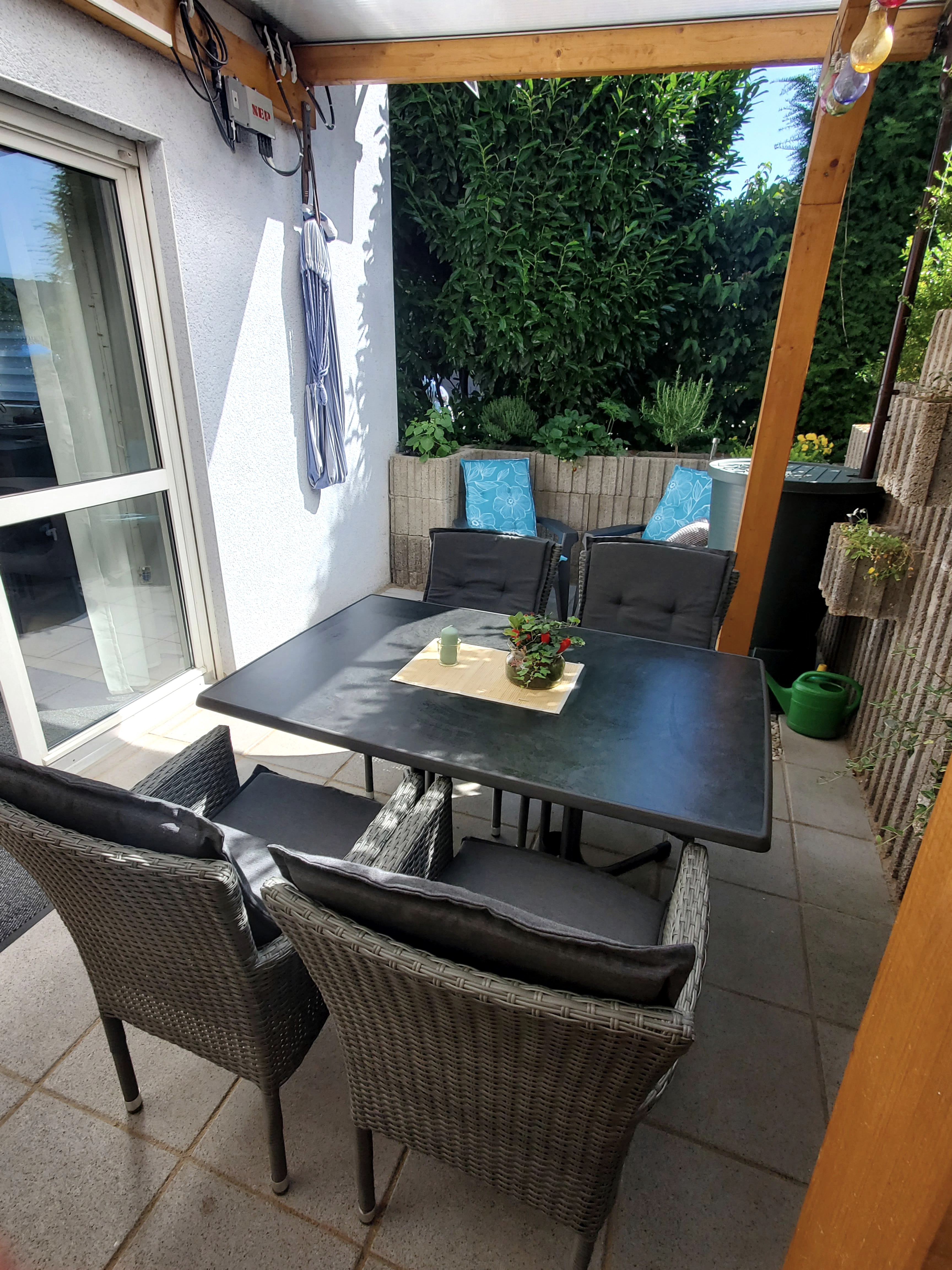 - Covered terrace 270 x 480 cm with seating for 4 people