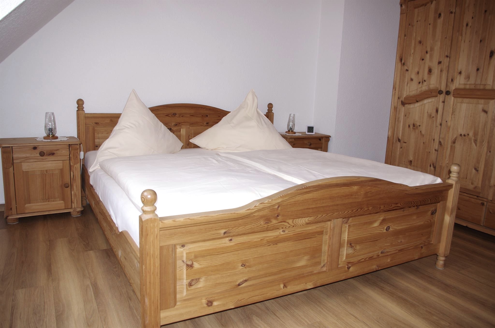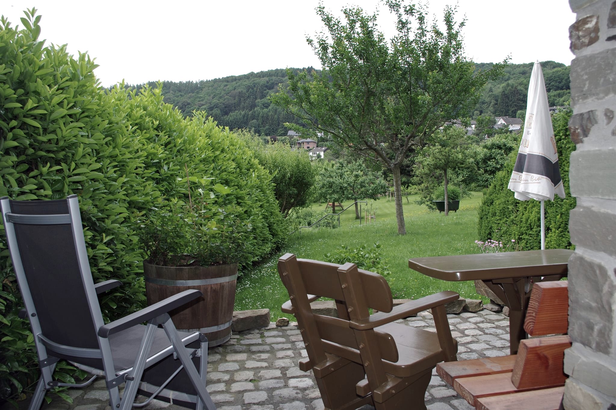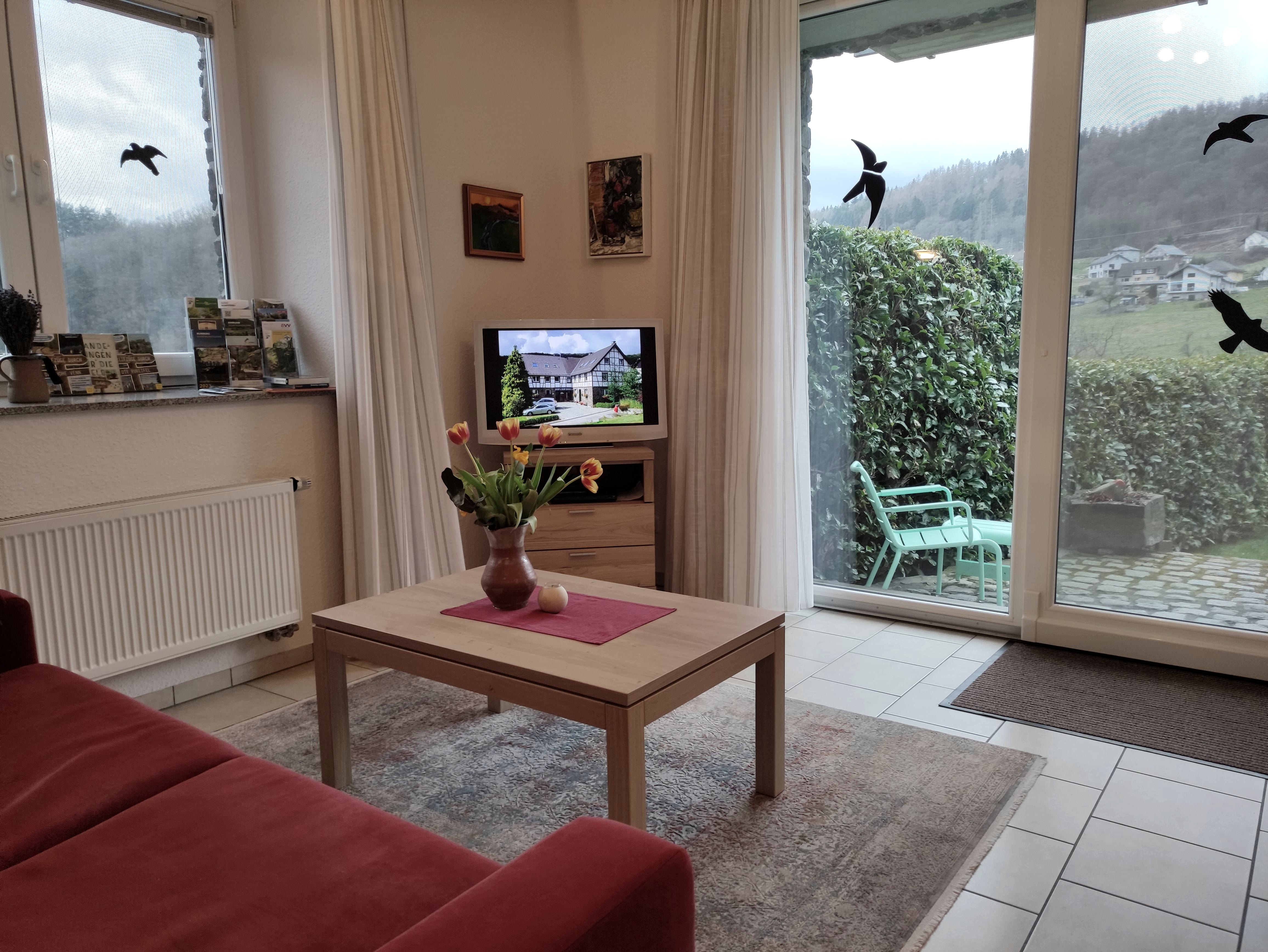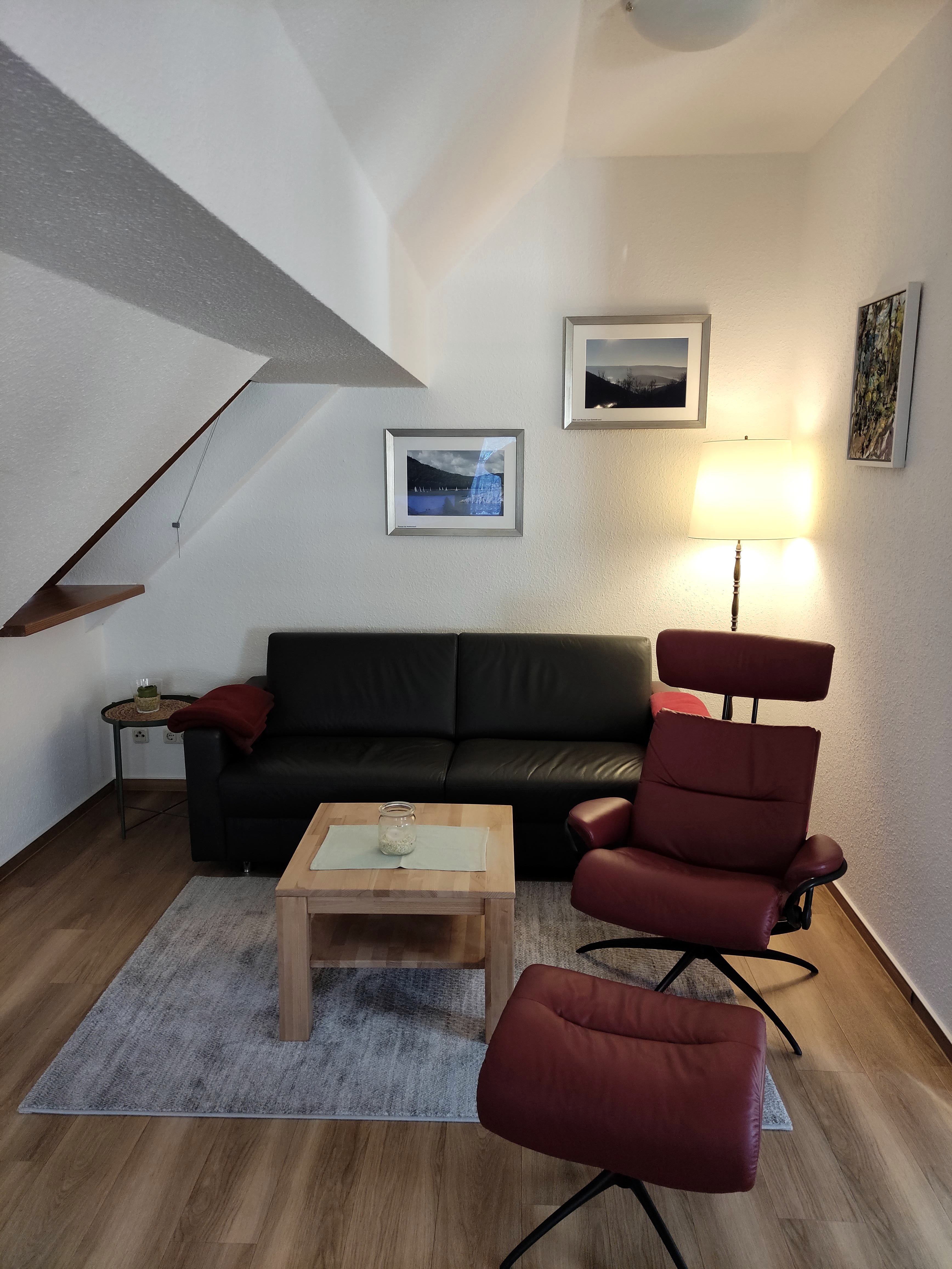 Modern, bright, and comfortable holiday apartments, 200 m from Lake Rur, offer relaxing days. From the apartment/attic, there is a wonderful view of Lake Rur and the Kermeter High Forest (National Park). The apartment/ground floor has a sun terrace. A children's bed is available upon request. Both apartments are equipped with separate bedrooms, shower/WC, living area with a pull-out sofa bed, and a fully equipped kitchenette including a microwave. Bed linen and towels are included in the price.