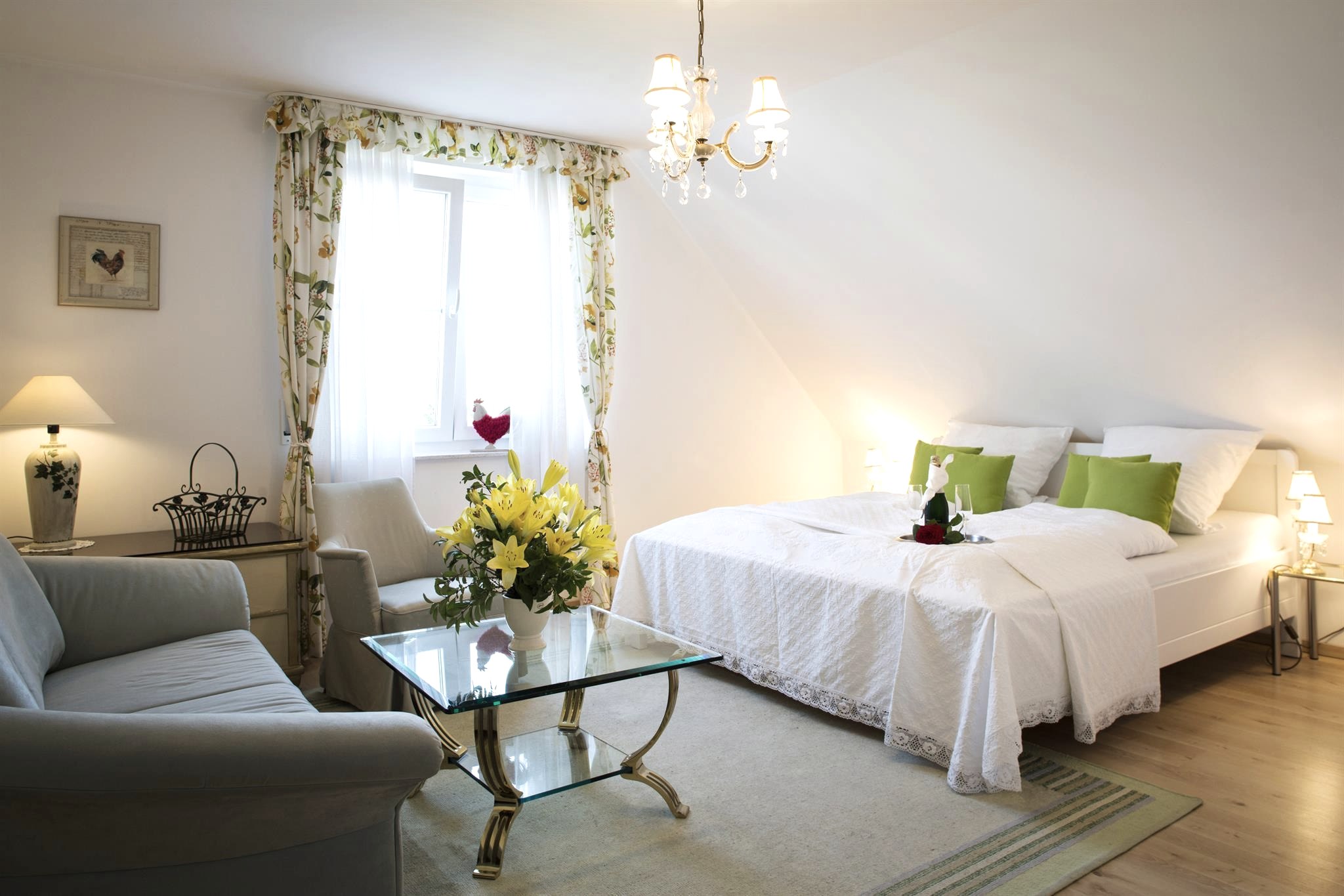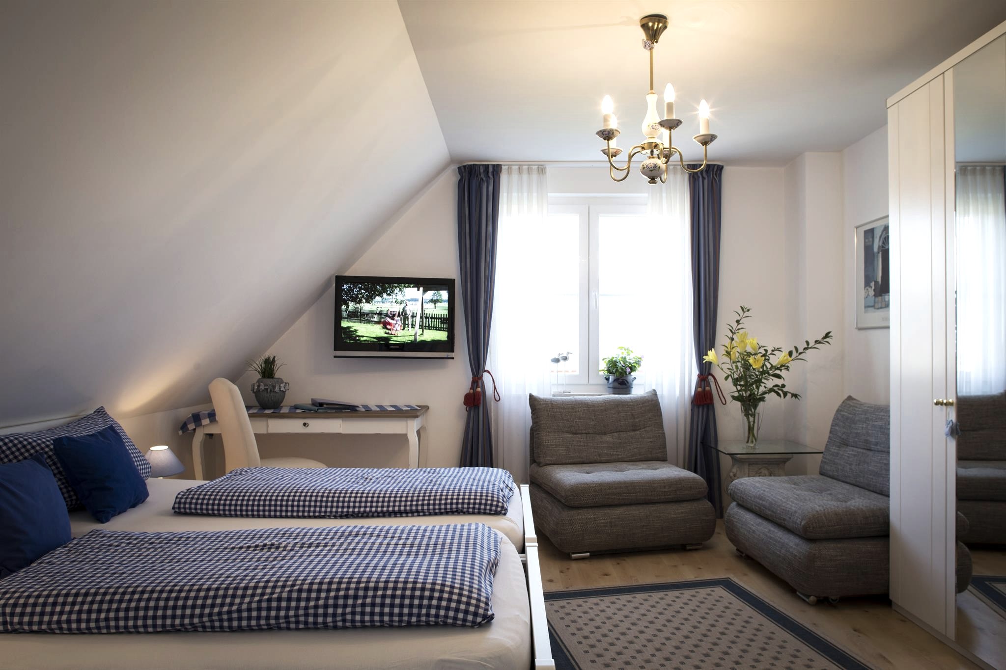 Four beautiful double rooms, attractively and modernly furnished, each with its own bathroom with shower are available.