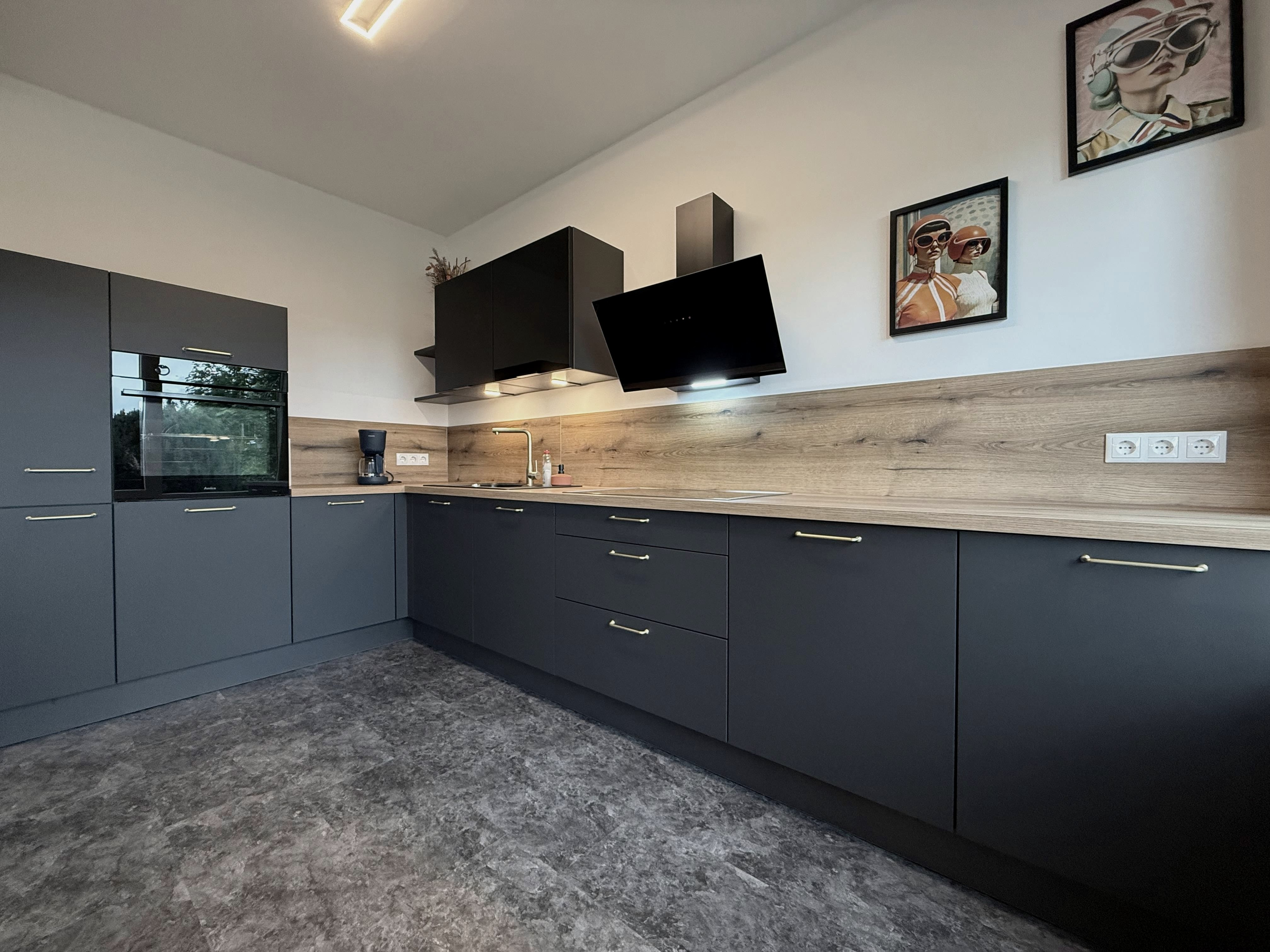 - Kitchen with dishwasher, oven, induction hob