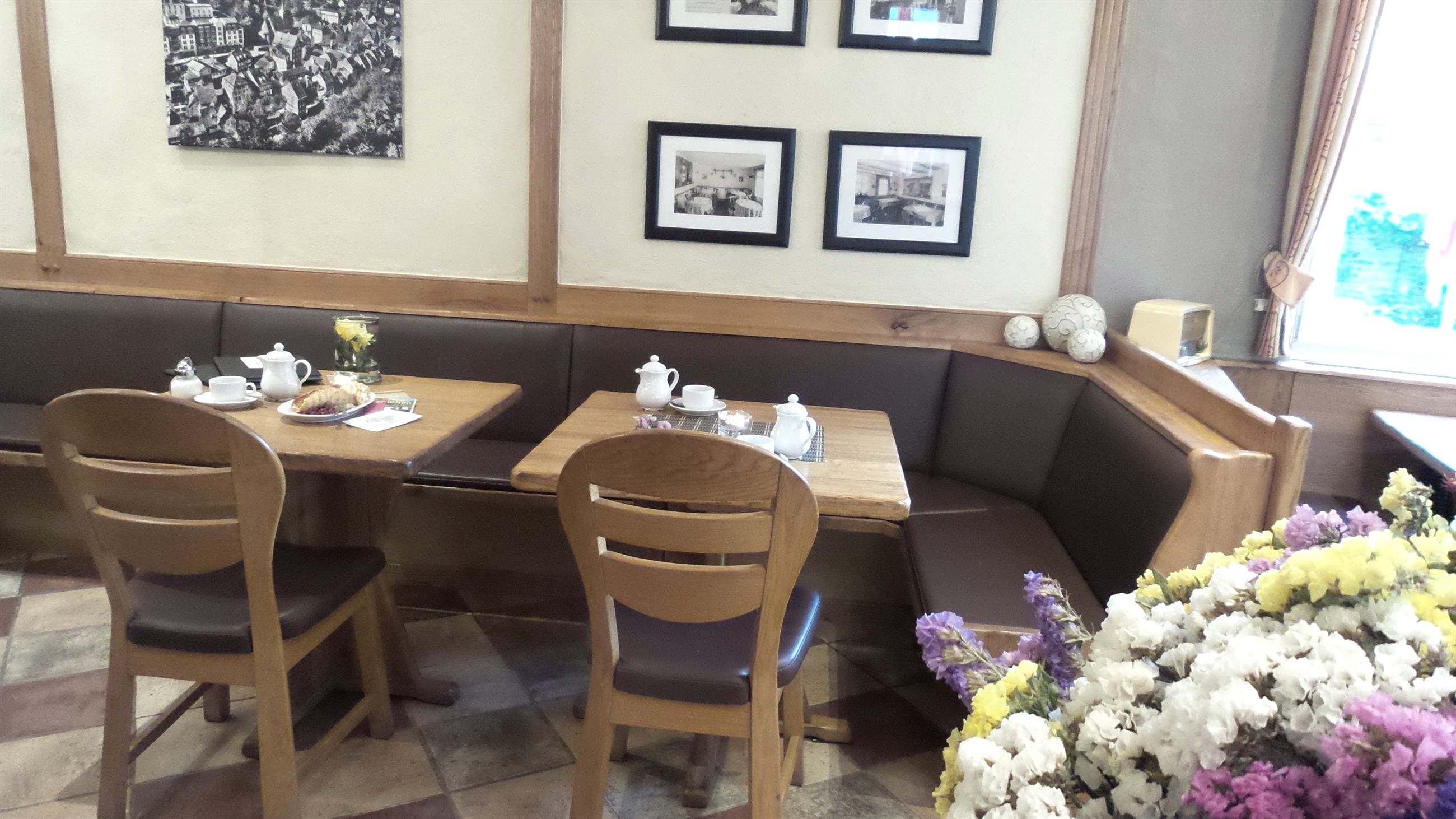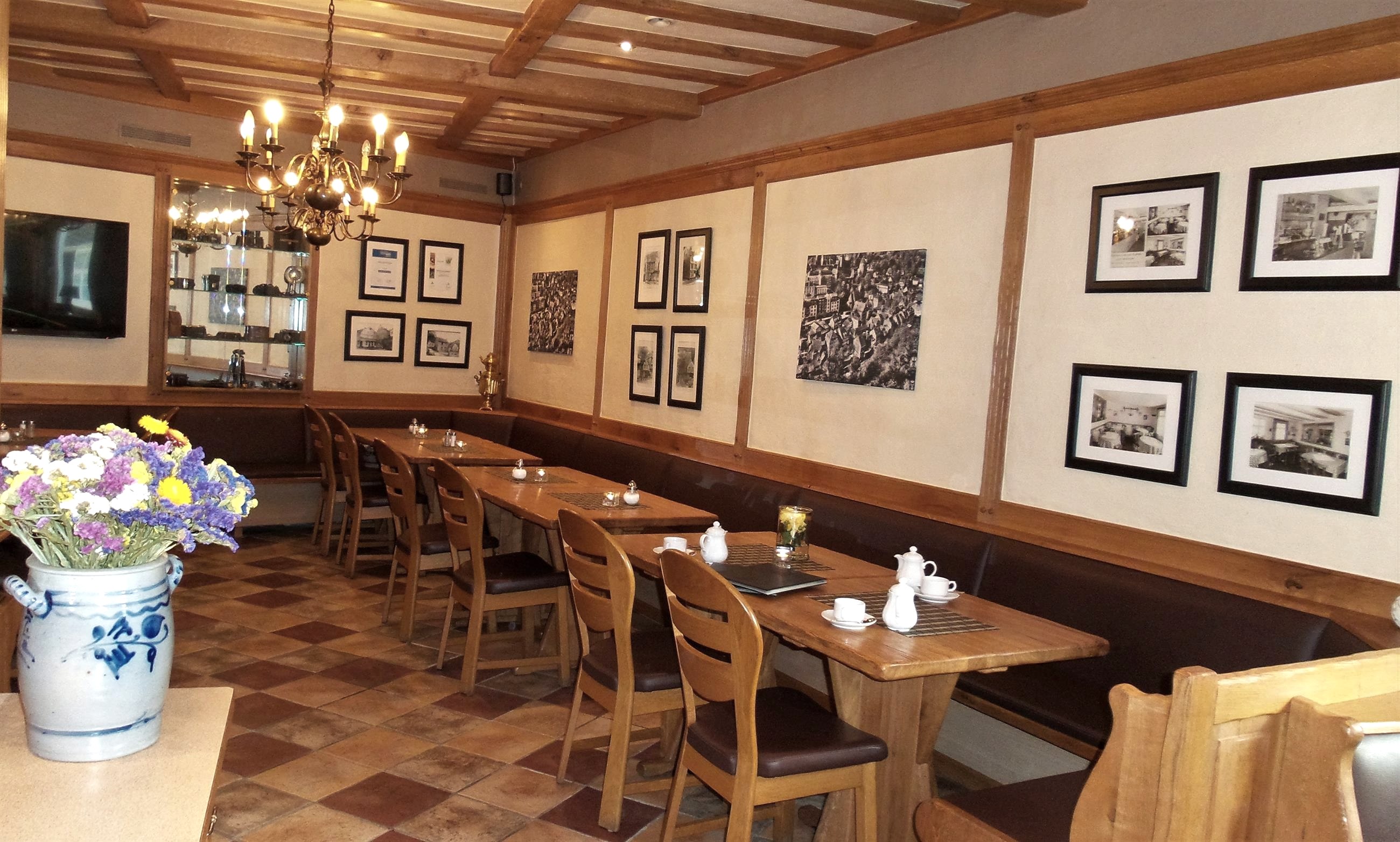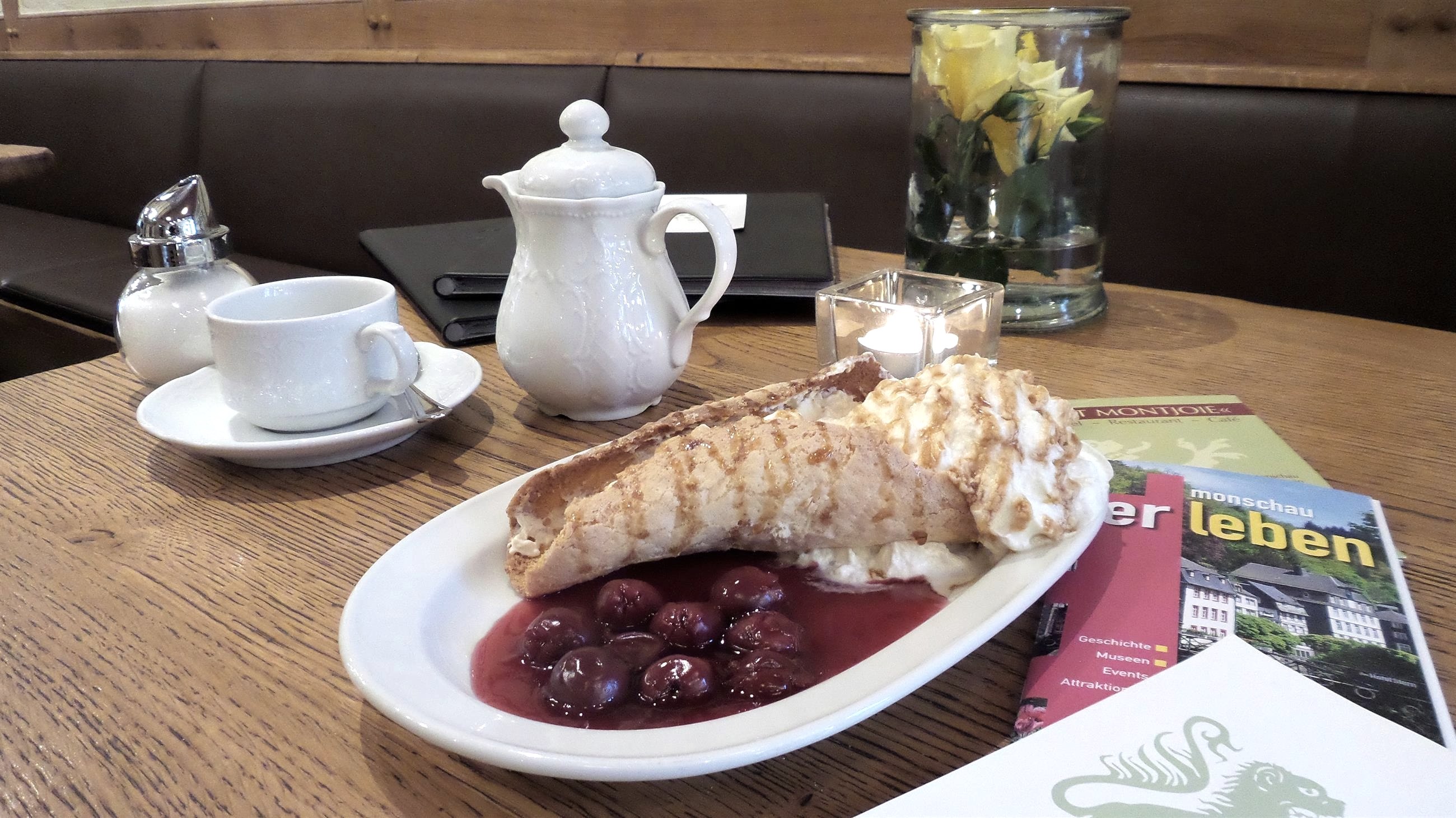 Schnitzel variations, seasonal and vegetarian dishes, cakes, pancakes and many local specialties such as Monschauer mustard soup and the famous Monschauer Dütchen.