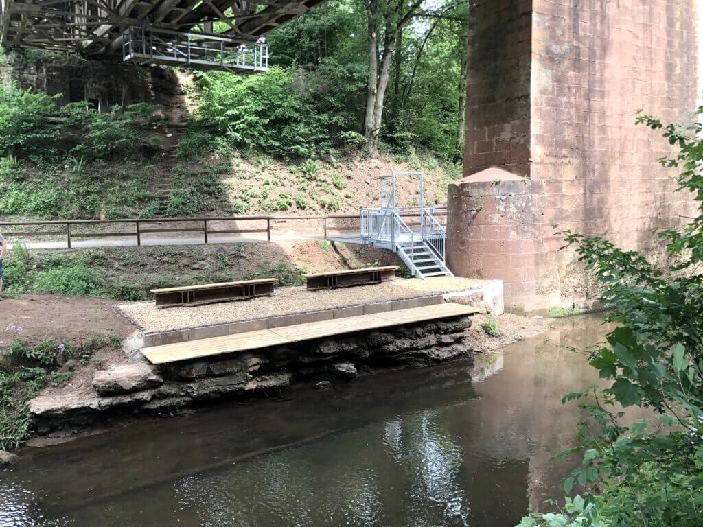 The railroad pillar converted into a climbing facility is located in a unique environment between two streams. Even on the hottest summer days, the temperatures here are optimal, as you climb directly above the water. Accessibility to the water and seating by the river guarantee fun for the whole family....