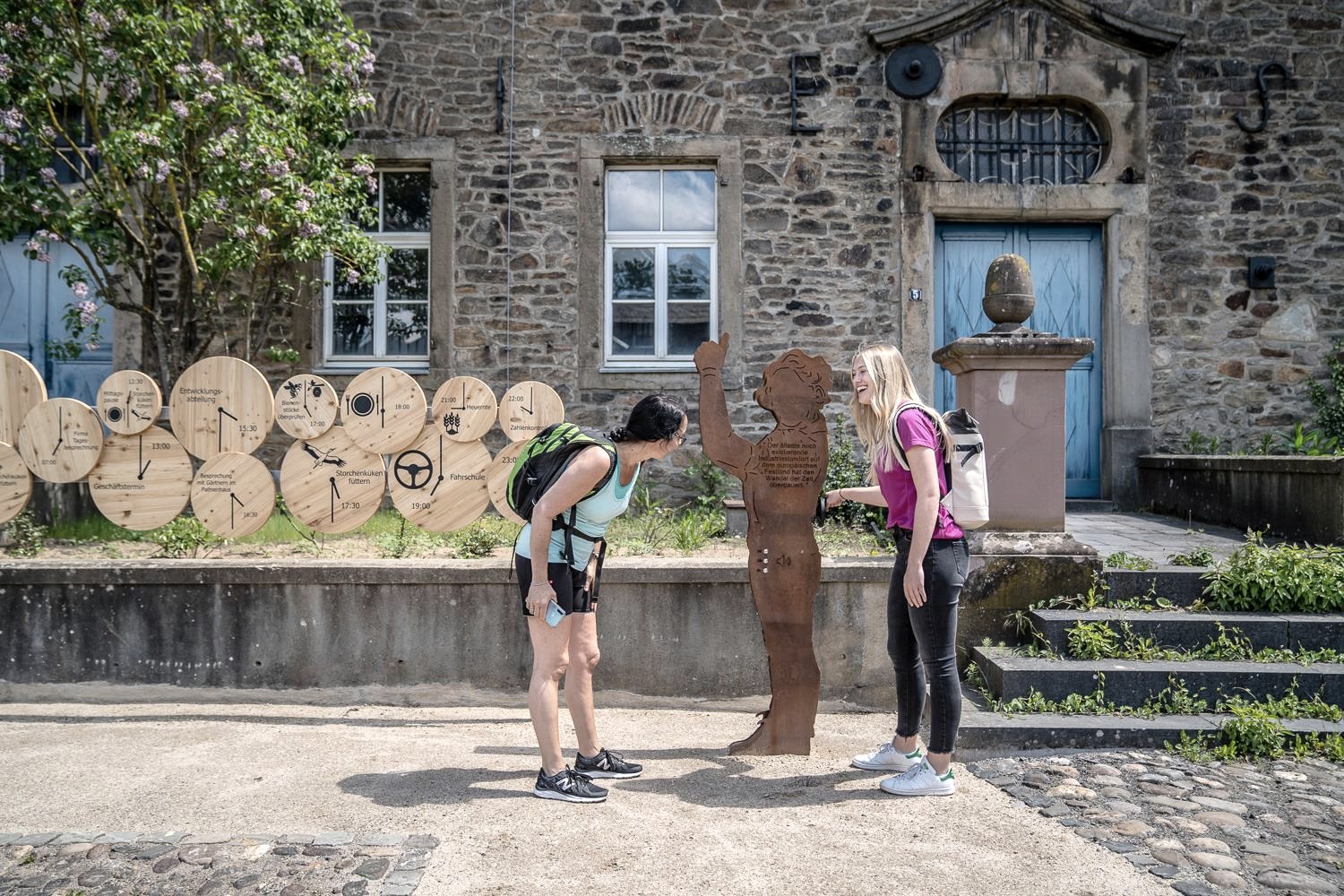 Accompany the Rur on the RurUfer cycle path through the district of Düren and learn how life in the region and the landscape have changed over the centuries. At a total of 18 rest and experience stations, 8 of which are in the district of Düren, storytelling figures vividly tell you how, for example, electricity came to the Eifel, why Hermine Hoesch managed the company's fortunes instead of her husband, how Düren became the "Mecca" of the paper industry and what changes open-cast mining brought for the families living there.