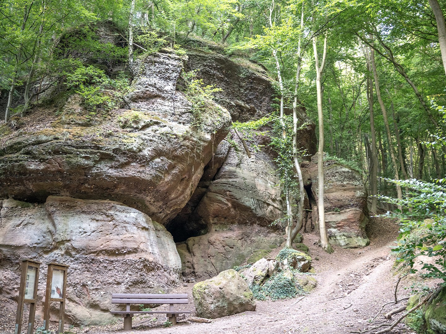 Follow in the footsteps of the schoolchildren from Nideggen-Brück and get to know the Nürburgring of yesteryear. Eagle owl Udo awaits you with information on nature conservation. Continue on to the true conquerors of the proud Nideggen Castle and into the world of myths and legends. Find out how the Schüdderfeld got its name. Finally, a 200-ton boulder tells of its spectacular fall.