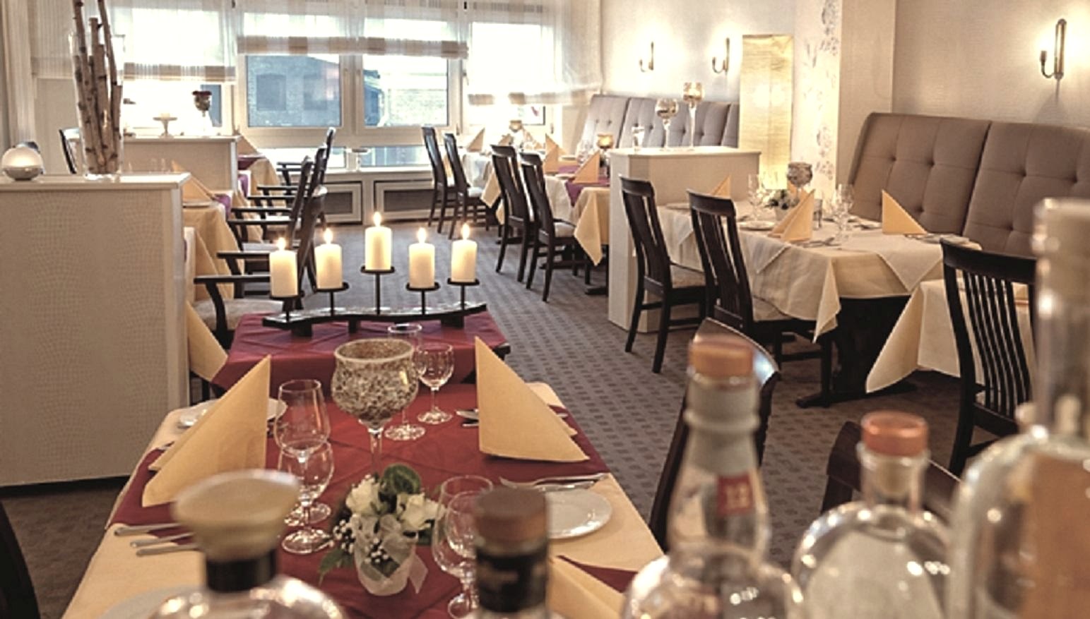 Our guests appreciate the successful blend of first-class cuisine, confident service and an exquisite wine list, but our guests also enjoy a fresh pilsner or a hearty Kölsch. Achim Harings, our head chef, delights you with classically elevated French cuisine. This has made our restaurant a trendy meeting place. The 25-course menus as well as various event menus offered at regular intervals have become well-known. The restaurant area welcomes you in a pleasant ambiance.