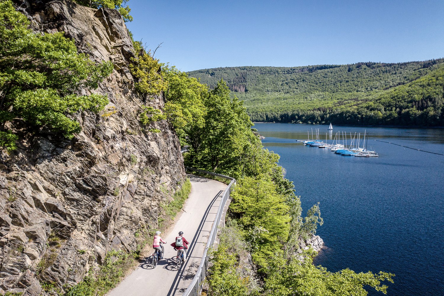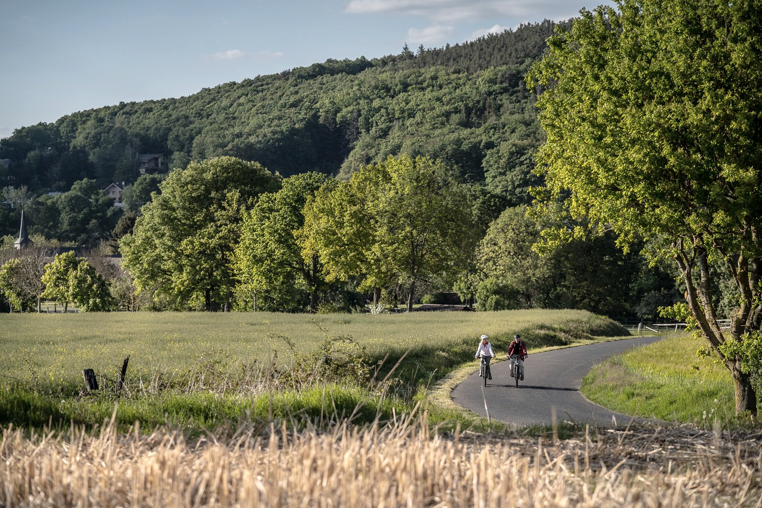 From its source in the High Fens in Belgium to its estuary in Roermond in the Netherlands, the RurUfer Cycle Route runs for around 170 kilometers through varied natural areas, historic town centers and idyllic landscapes. Starting at the "Signal de Botrange" viewing platform, the highest point in Belgium, cyclists head towards the old clothmaking town of Monschau after a series of wooded sections. With the Rur always to the side, the Eifel lake district and the Eifel National Park spread out before the visitor from Einruhr onwards. Through unique landscapes such as the Jülicher Börde and the indeland, the final stage through the Heinsberger Land region to the Netherlands is also very cycle-friendly.
