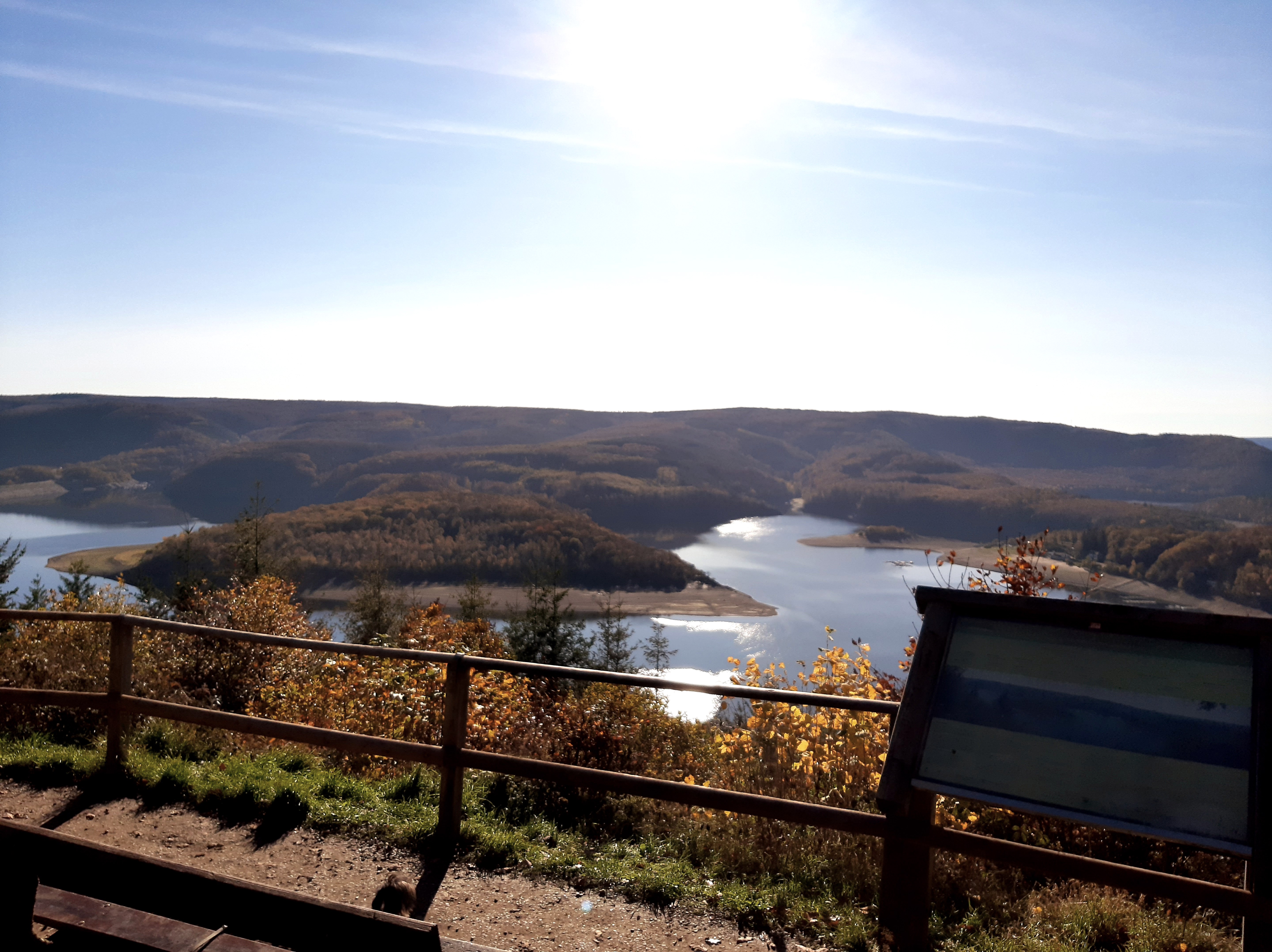 - You then reach the first viewpoint "Schöne Aussicht" with a view of the blue Rursee and its island of love. A little later, the next unique panoramic view awaits you on the Hubertushöhe. Tip: don't forget to take a few group photos at both viewpoints.