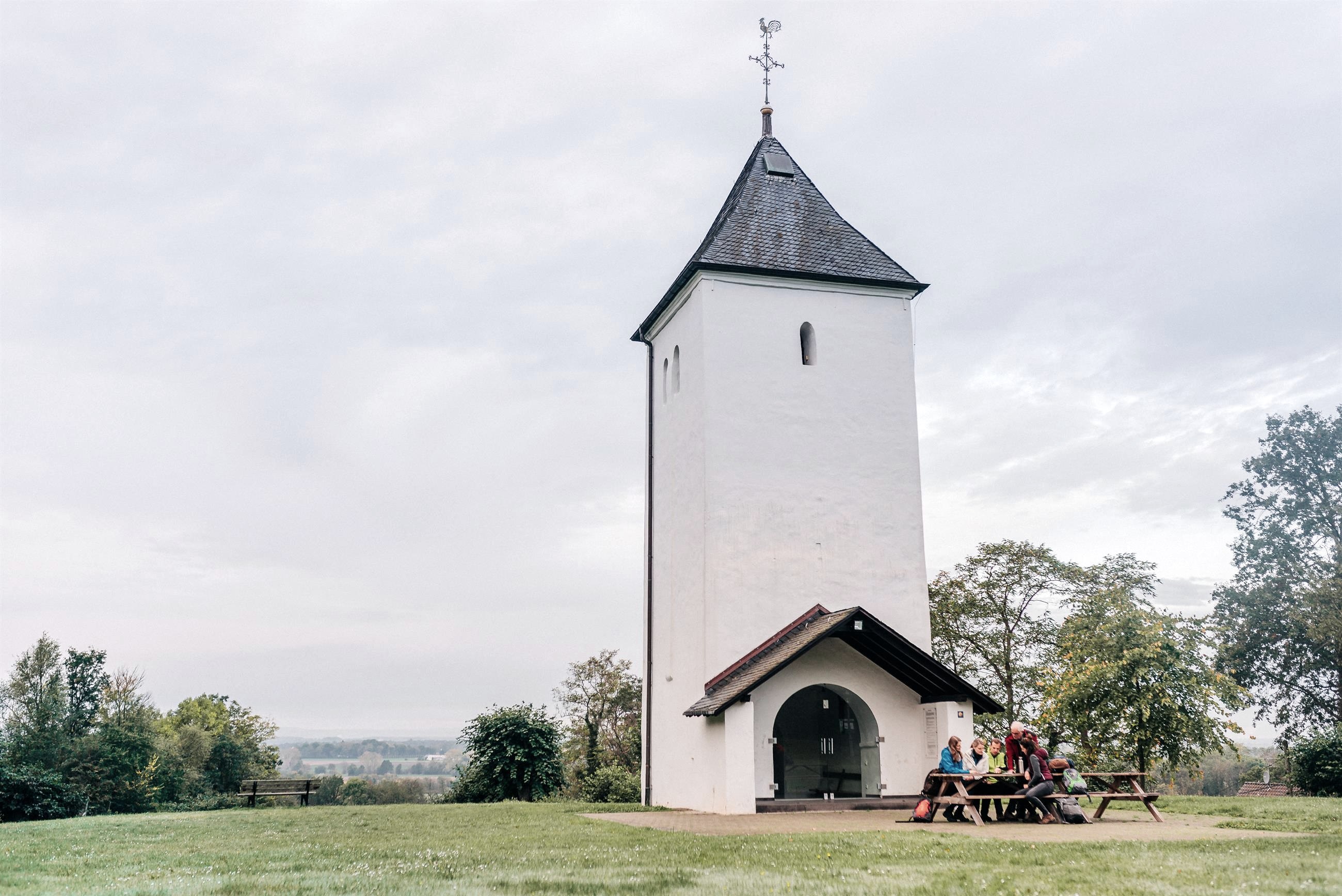 The Swister Tower near Weilerswist is a remnant of the old parish and pilgrimage church of the vanished village of Swist on the Swisterberg (built c. 1100-1125). Foundation remains of the nave are attributed to the 9th century. Archaeological finds from Roman times indicate that the first Christian church was built over a Roman sanctuary. The St. James pilgrimage route passes directly by the tower. In 1828/1830 the nave was demolished due to dilapidation, then in 1854 the tower was rebuilt as a prayer room.