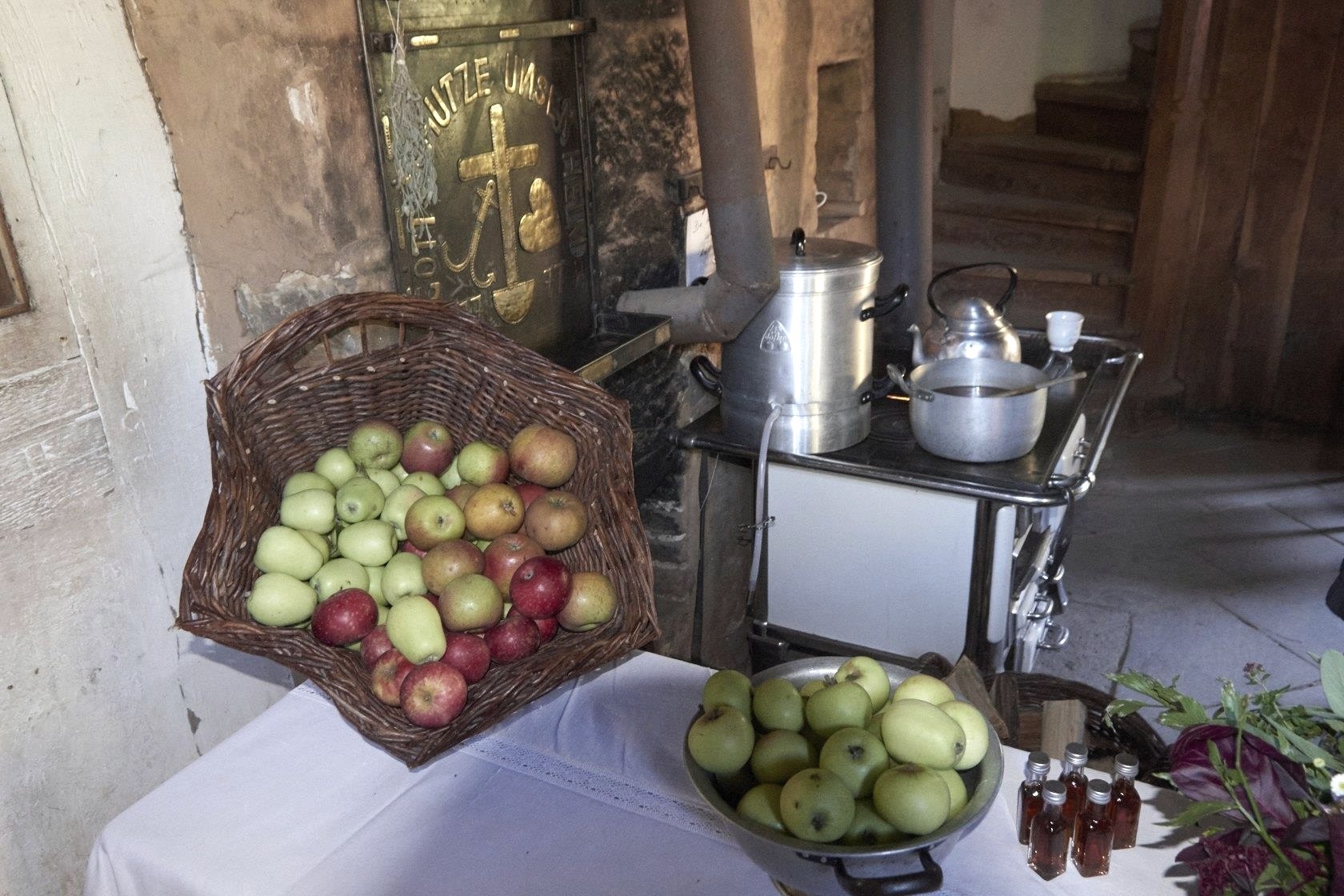 Several stands offer a variety of apples and apple products, such as rare regional fruit varieties, fruit trees, cider and "Viez" as well as apple pancakes. The museum restaurants have also added apple dishes to their range on this day. Here, for example, pork goulash with quinces and bread dumplings and rice pudding with apple sauce await.